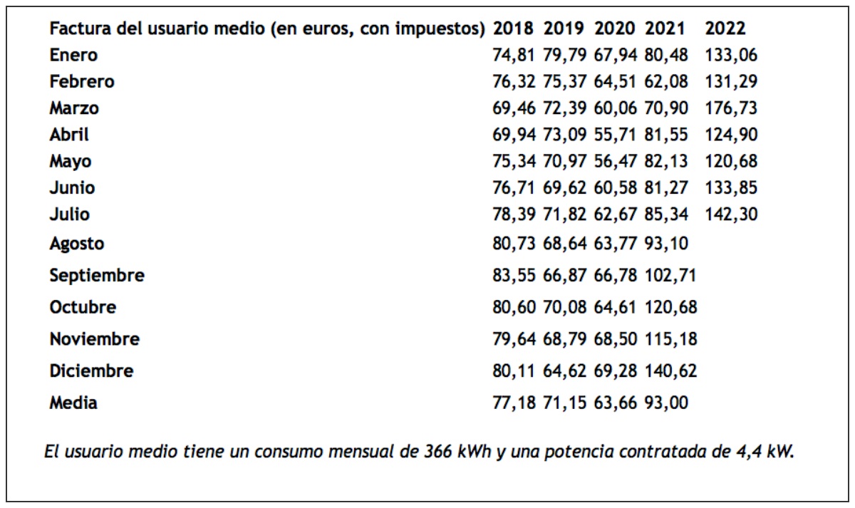 La subida interanual de julio representa el 66,7%. El mismo mes del año pasado, la factura se situó en 85,34 euros.