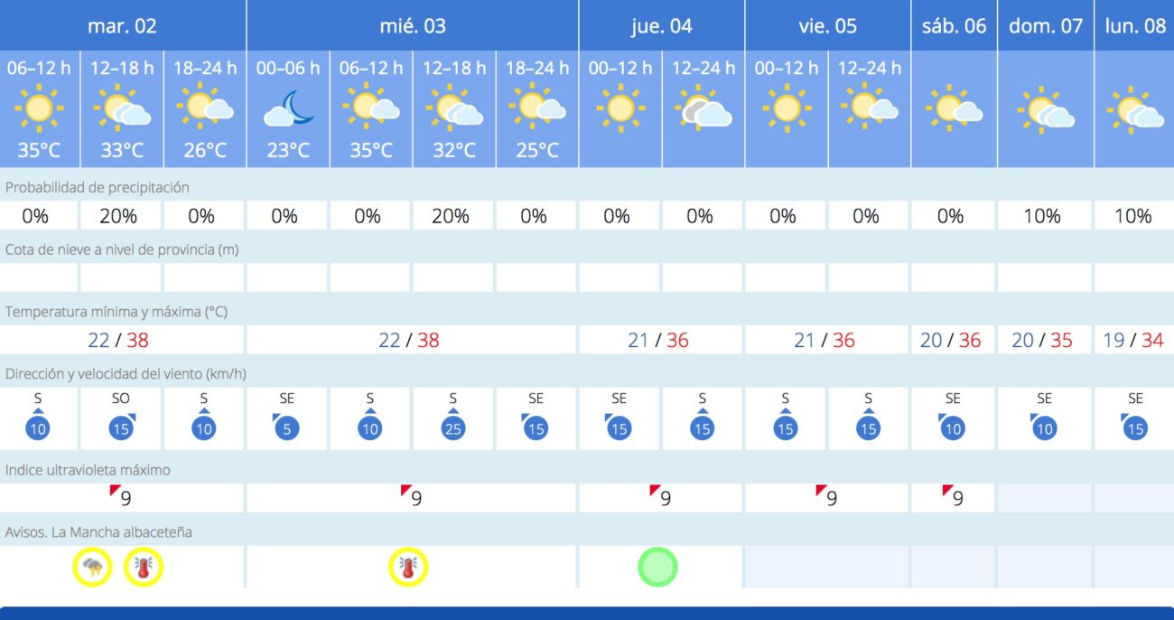 La previsión de la AEMET para Albacete capital es la siguiente: