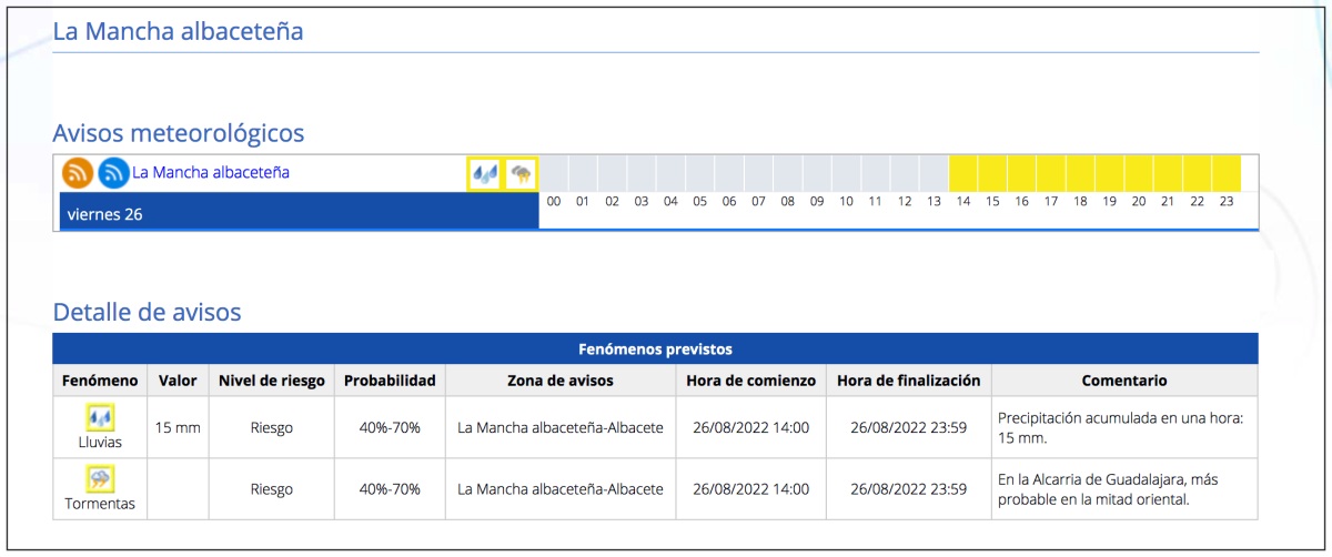 La AEMET ha activado la alerta amarilla en Albacete capital y provincia: