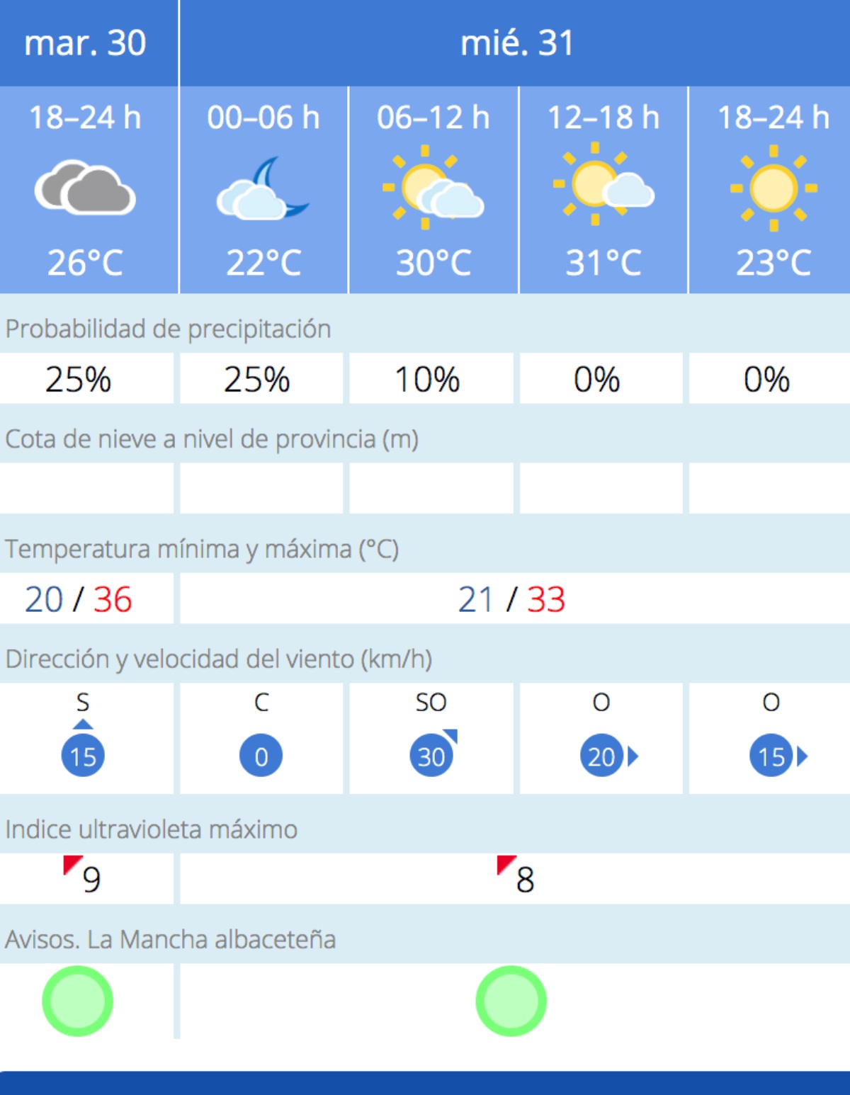 La previsión de la AEMET para Albacete capital es la siguiente: