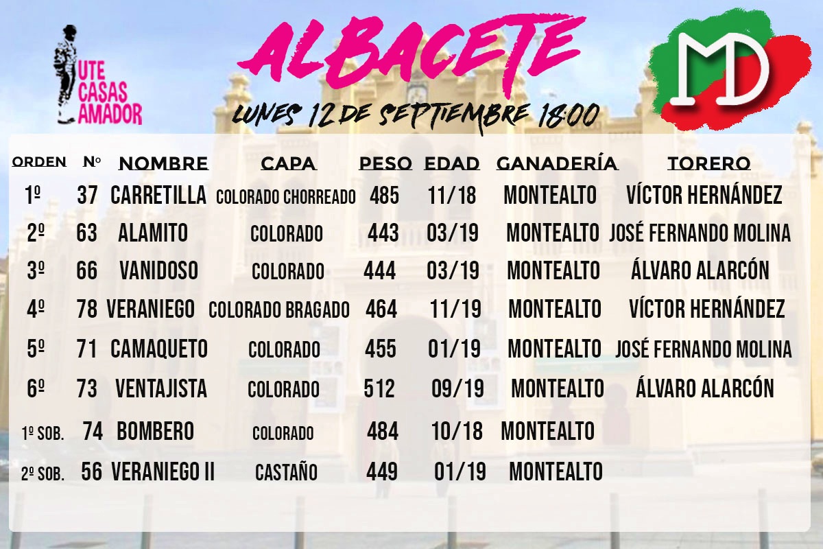 Y es que, según datos aportados por la empresa arrendataria, la UTE Casas-Amador, los pesos de los toros que se lidiarán este martes por la tarde en Albacete son los siguientes: