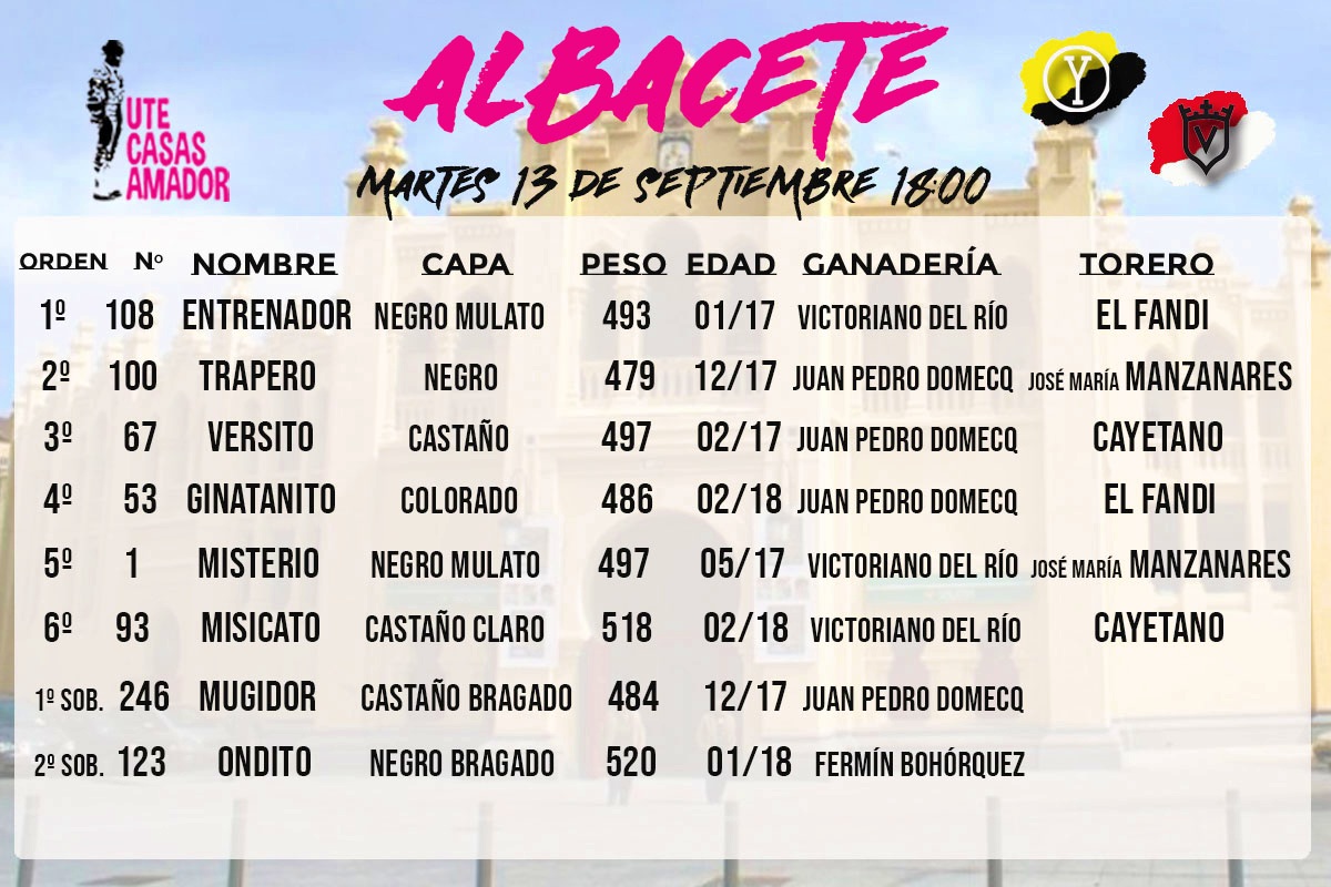 En la tarde de este martes 13 de septiembre, si el tiempo no lo impide, está previsto que se lidie en Albacete una corrida de toros en la que la terna está compuesta por David Fandila ‘El Fandi’, José María Manzanares y Cayetano Rivera Ordóñez, y para la que Simón Casas y Manuel Amador han ideado el apelativo de ‘Desafío Ganadero’.