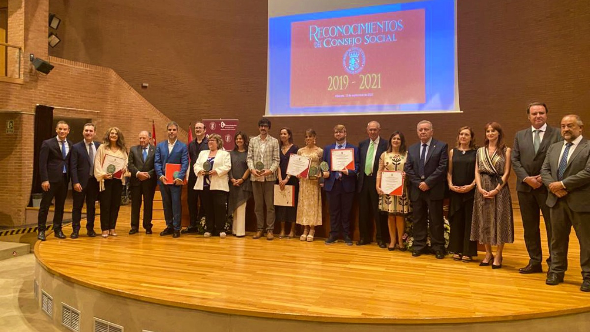 El acto de entrega ha estado presidido por el rector de la Universidad de Castilla-La Mancha (UCLM), Julián Garde, y por el presidente del Consejo Social, Félix Sanz Roldán.