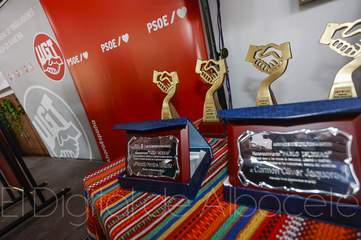 Junto a estos premios, la Unión General de Trabajadores, entrega sus distinciones, que en esta ocasión ha destacado a FADEMUR, la Federación de Asociaciones de Mujeres Rurales en la Provincia de Albacete; y a Josefa Abellán por su trayectoria en la representación sindical.