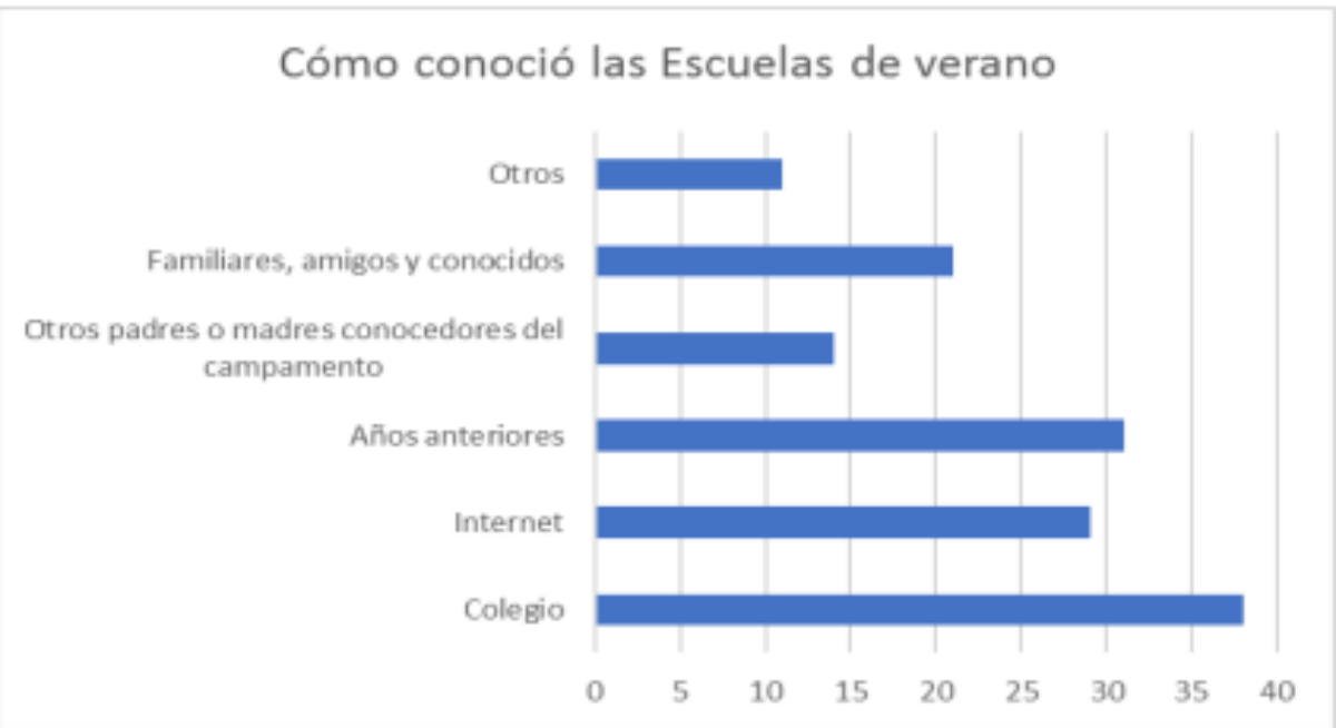 De esta encuesta también se extrae que un importante porcentaje de los usuarios conocieron las Escuelas de Verano por el centro educativo en el que desarrollan su actividad lectiva los menores. Pero también hay quien descubrió este servicio a través de Internet o porque habían tenido noticias de este programa en años anteriores.