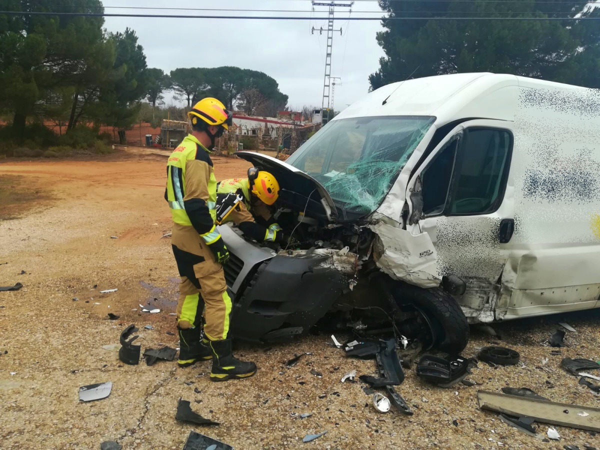 Tras el choque, los bomberos del Parque de Motilla se tuvieron que desplazar al lugar del suceso para proceder al rescate de una mujer de en torno a 80 años que había quedado atrapada en uno de los vehículos implicados.