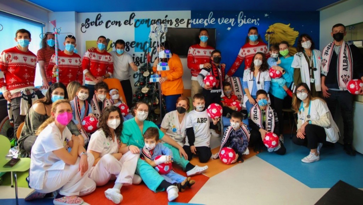 Desde 2019, por culpa de la pandemia, el Albacete Balompié y su primera plantilla no hacían su visita tradicional a los albacetistas más jóvenes del Hospital Universitario de Albacete.