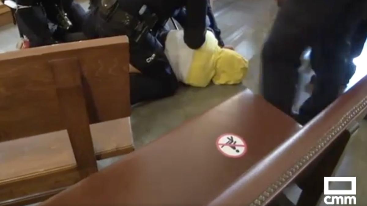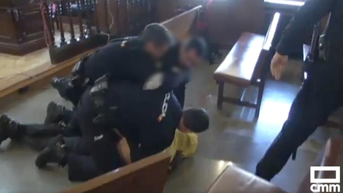 Según se puede ver en el vídeo emitido por el canal de televisión CMM, los cuatro agentes se abalanzan sobre el procesado, evitando que llegue a producirse dicha agresión.