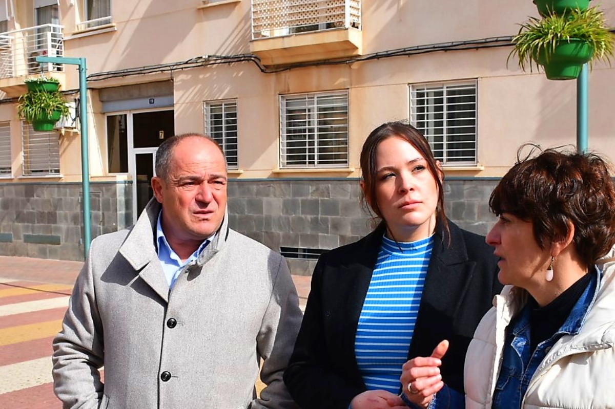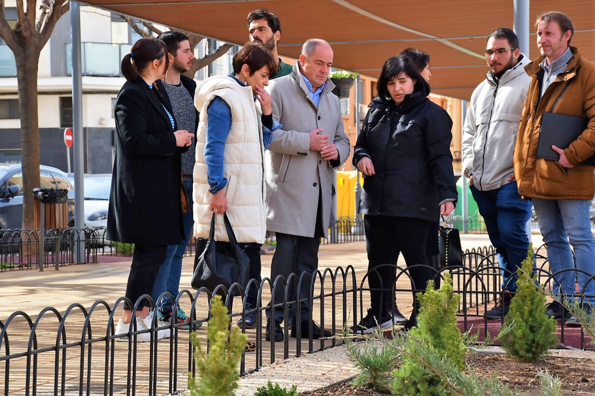 El alcalde ha visitado hoy la plaza, acompañada de la concejala de Barrios y Pedanías, Ana Albaladejo, y el concejal de Sostenibilidad, junto con la vicepresidenta de la Asociación de Vecinos de Carretas-Huerta de Marzo, Cilinia Tébar, entre otros representantes de este colectivo, como Gema Panadero y Óscar Ramos.