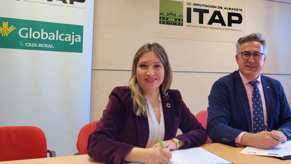 La vicepresidenta de la Diputación de Albacete, Amparo Torres, en su condición de consejera delegada del Instituto Técnico Agronómico Provincial (ITAP), y el director de Banca Rural en Globalcaja, Alberto Marcilla, en representación de Globalcaja, han suscrito un nuevo convenio de colaboración entre ambas entidades para seguir contribuyendo, de la mano, al desarrollo del sector agroalimentario de Albacete y de Castilla-La Mancha.