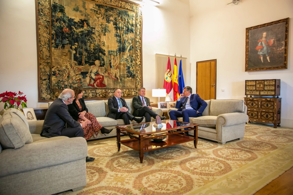 En la reunión con el presidente de Castilla-La Mancha, además de la consejera de Economía, Empresas y Empleo, Patricia Franco; han participado el alcalde de Albacete, Emilio Sáez; el presidente de Stadler, Íñigo Parra; y el director de Desarrollo de Negocio y Comunicación de Stadler, Juan Delgado.