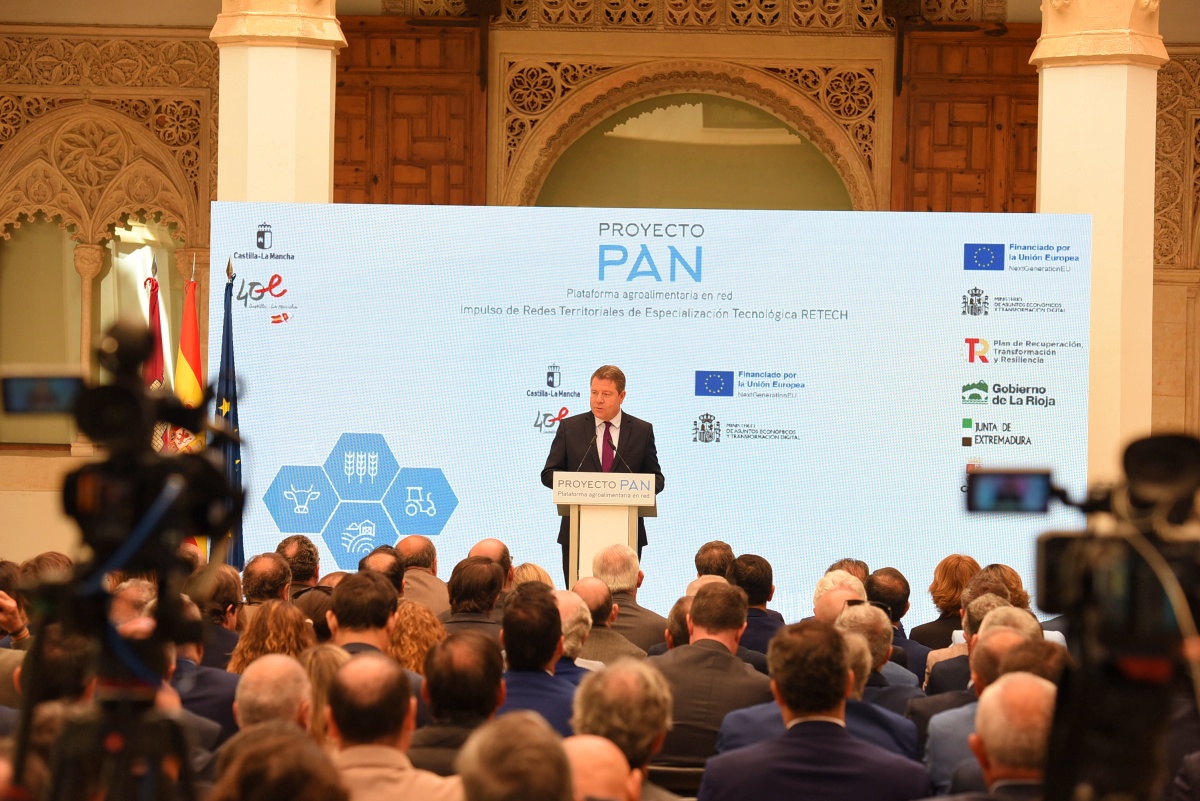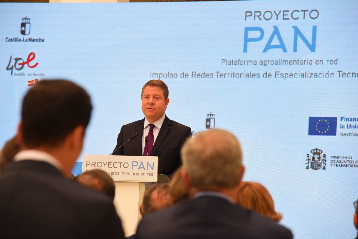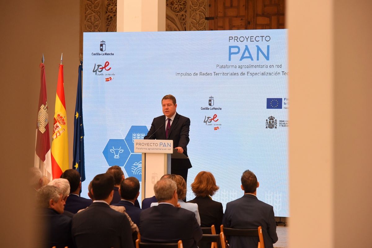 Así lo ha dado a conocer García-Page este mediodía, en el Palacio de Fuensalida, donde ha presentado, junto a la vicepresidenta Primera y ministra de Asuntos Económicos, Nadia Calviño, el Proyecto ‘PAN’, referido a la creación de una Plataforma Agroalimentaria en Red, una iniciativa que lidera Castilla-La Mancha y que cuenta con la participación de Castilla y León, La Rioja y Extremadura. Un proyecto en el que el presidente regional ha reconocido “un planteamiento de hacer país” porque “obliga a acuerdos entre comunidades autónomas” lo cual constituye “la mejor garantía de que sea un proyecto de todos”, ha rematado.