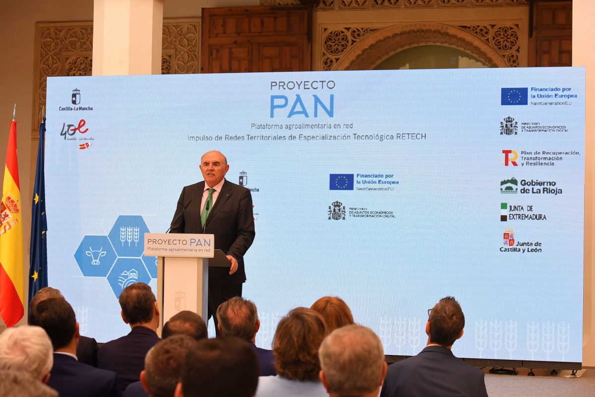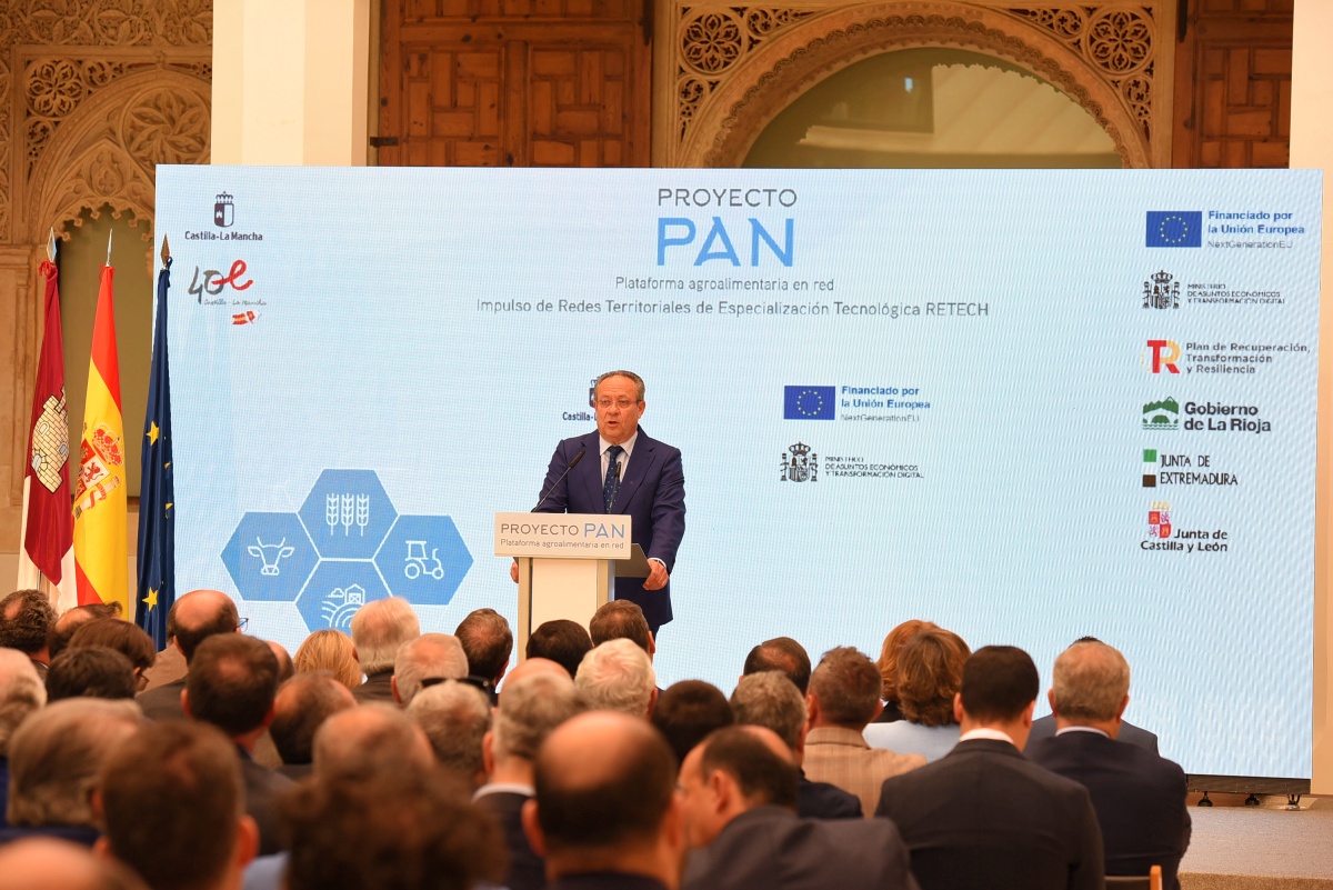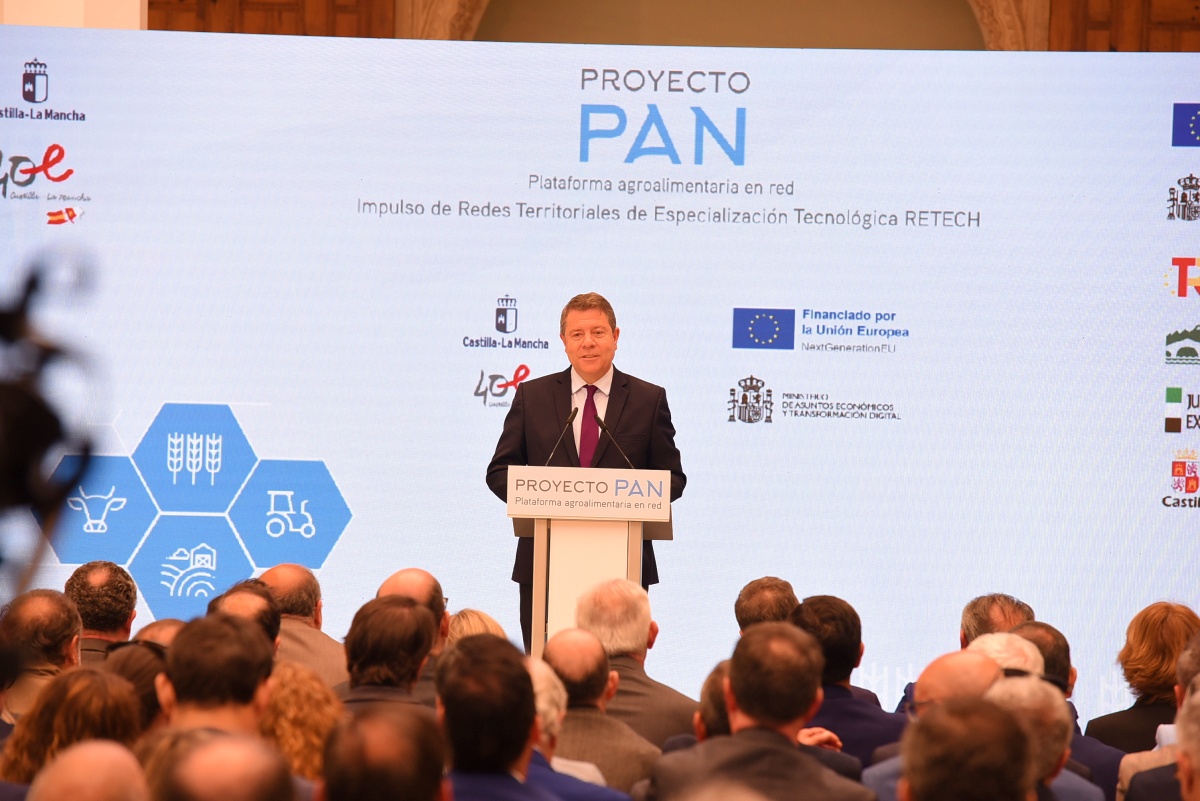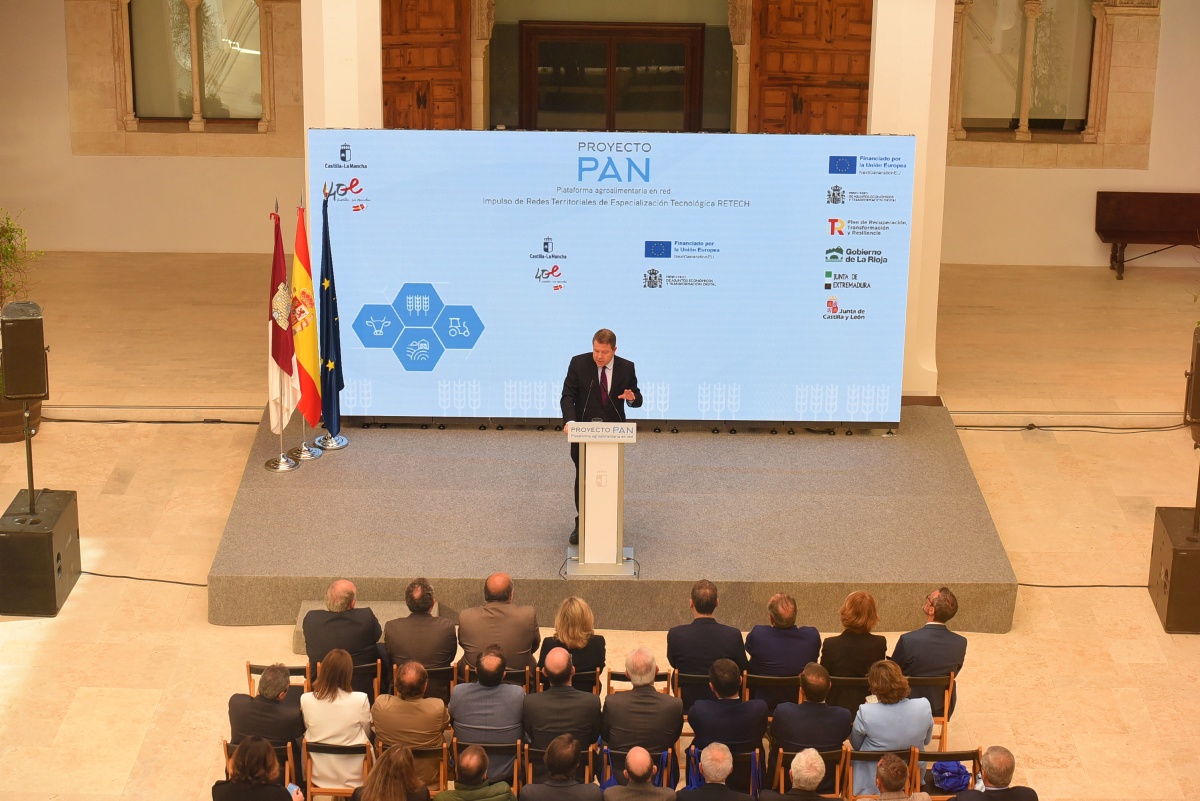 Así lo ha dado a conocer García-Page este mediodía, en el Palacio de Fuensalida, donde ha presentado, junto a la vicepresidenta Primera y ministra de Asuntos Económicos, Nadia Calviño, el Proyecto ‘PAN’, referido a la creación de una Plataforma Agroalimentaria en Red, una iniciativa que lidera Castilla-La Mancha y que cuenta con la participación de Castilla y León, La Rioja y Extremadura. Un proyecto en el que el presidente regional ha reconocido “un planteamiento de hacer país” porque “obliga a acuerdos entre comunidades autónomas” lo cual constituye “la mejor garantía de que sea un proyecto de todos”, ha rematado.