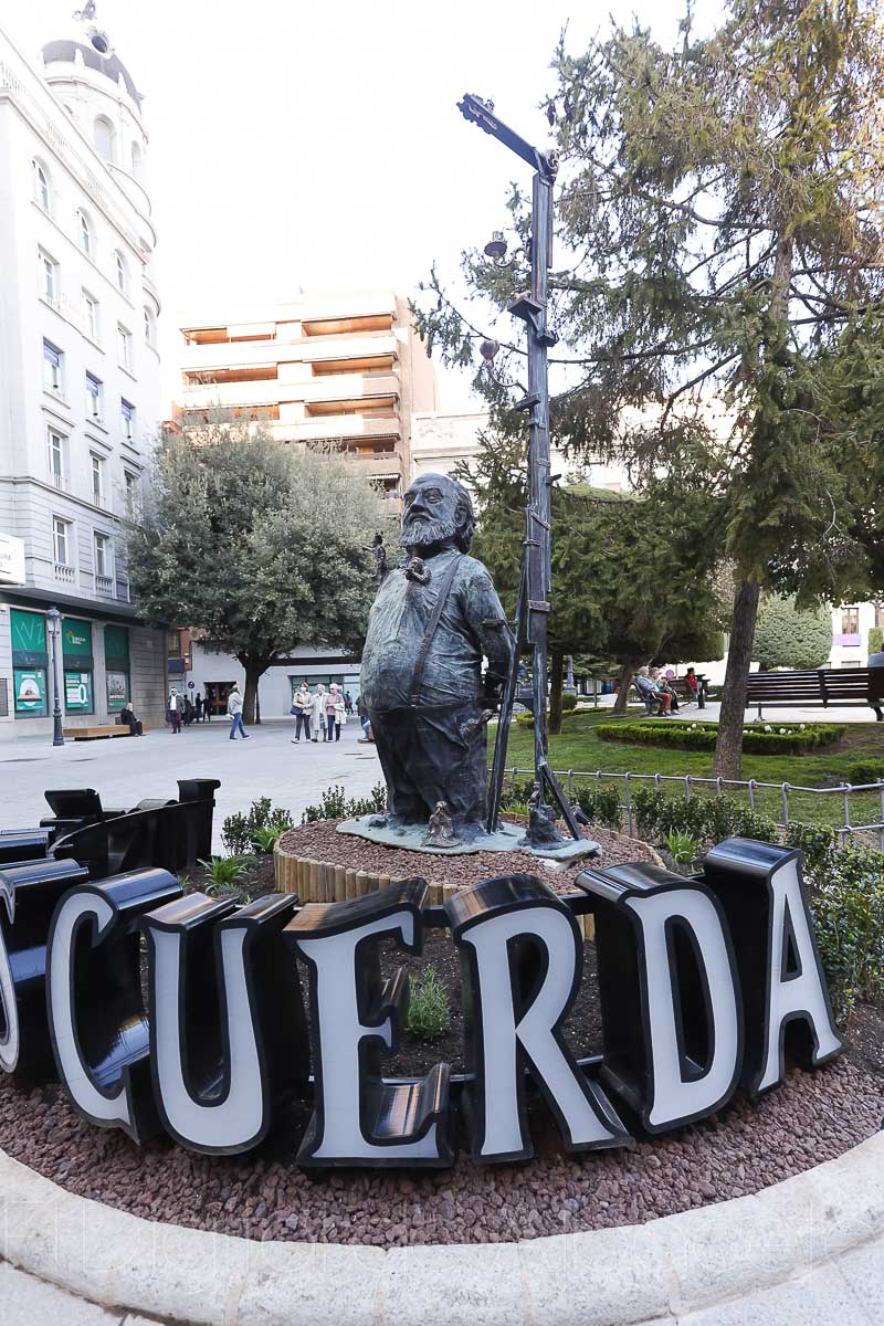 La escultura en homenaje al cineasta albaceteño ha sido realizada por el artista José Luis Serzo y está ubicada en los Jardines del Altozano, frente a la Filmoteca, lugar que alberga numerosos documentos sobre las obras de Cuerda y claquetas originales de sus películas. Se trata de una obra que hace alusión a los hombres plantados que aparecen en ‘Amanece que no es poco’ y que incluye personajes del universo de este director de cine.