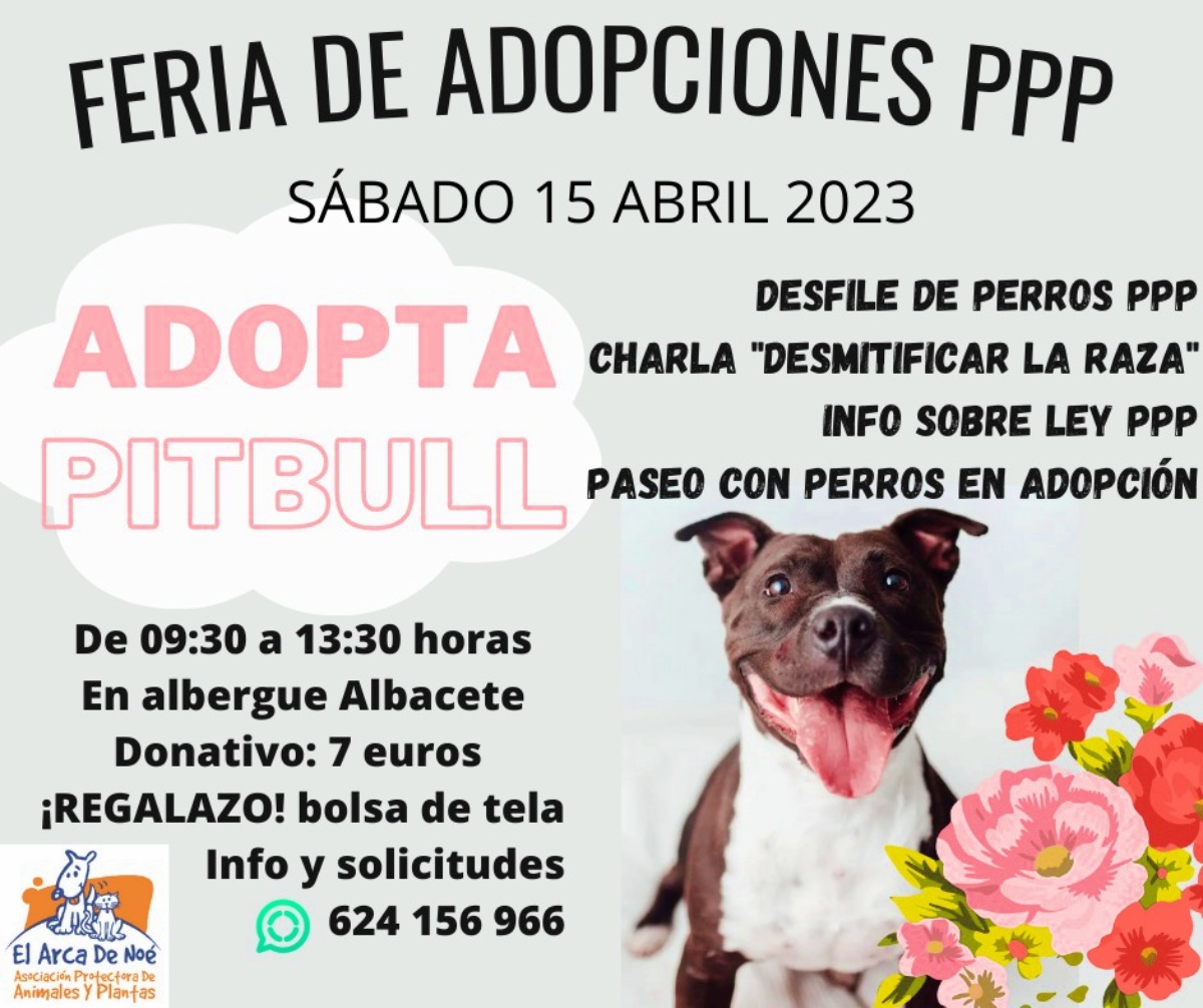 Mañana sábado día 15 de abril de 2023 tendrá lugar en el albergue del Arca de Noé en Albacete la primera Feria de adopciones de razas consideradas PPP.