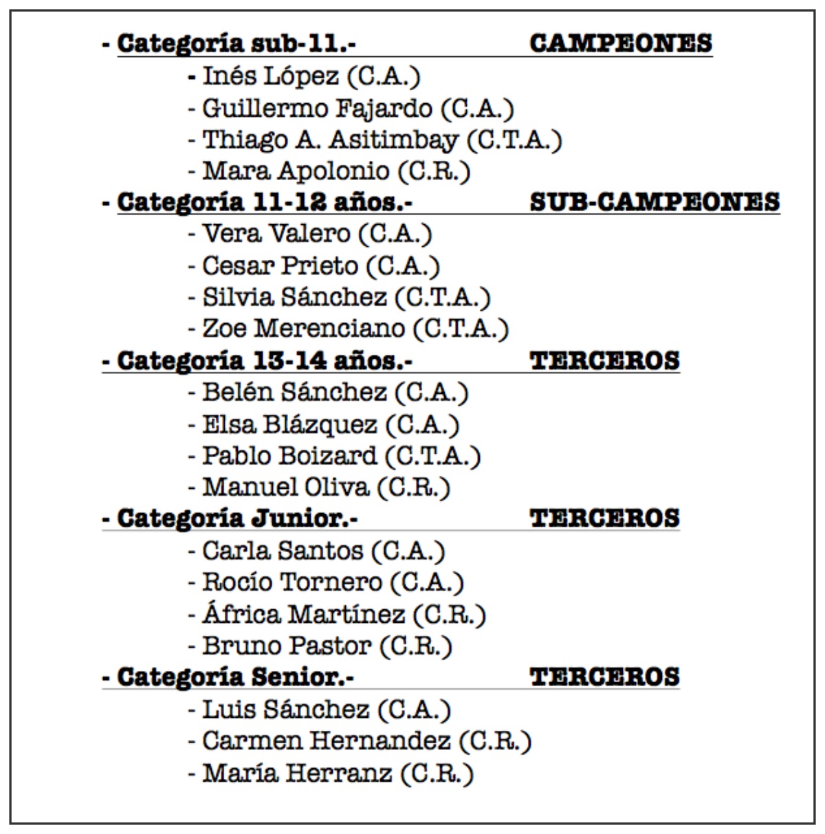 Integrantes de ambos equipos de Albacete consiguieron subir al podium en todas las categorías: