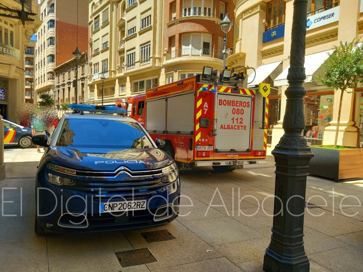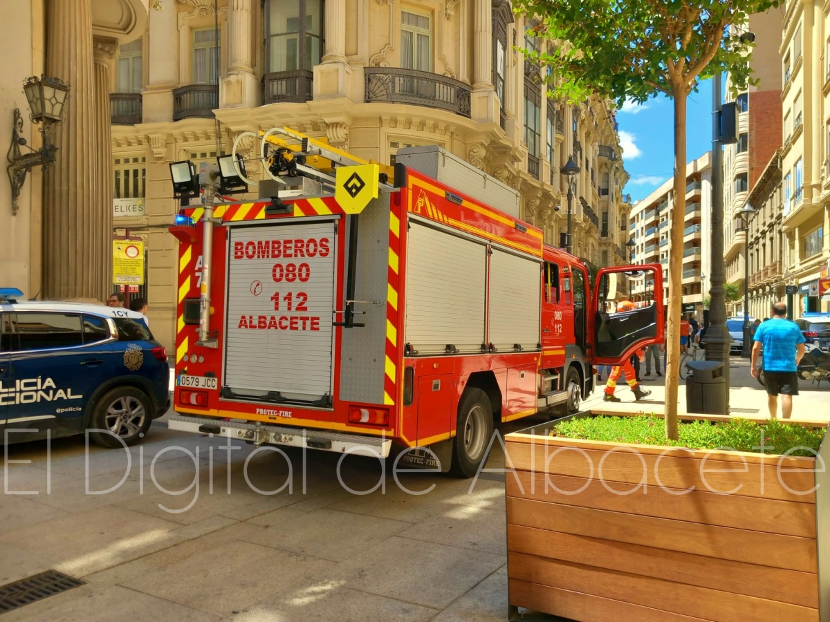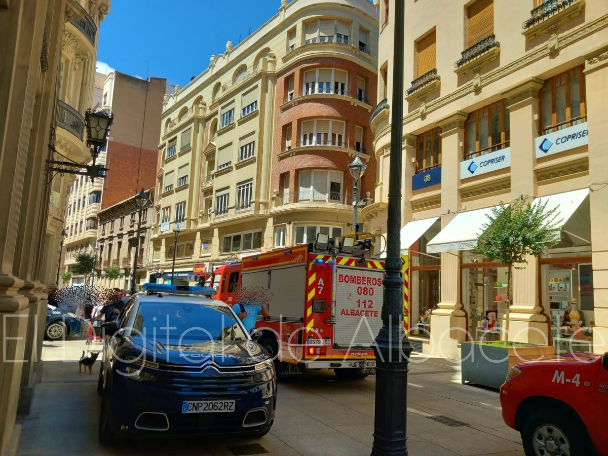 En torno a las 12:50 horas de este miércoles el corazón de Albacete era tomado por los Bomberos de la capital manchega y agentes de la Policía Nacional y de la Policía Local.