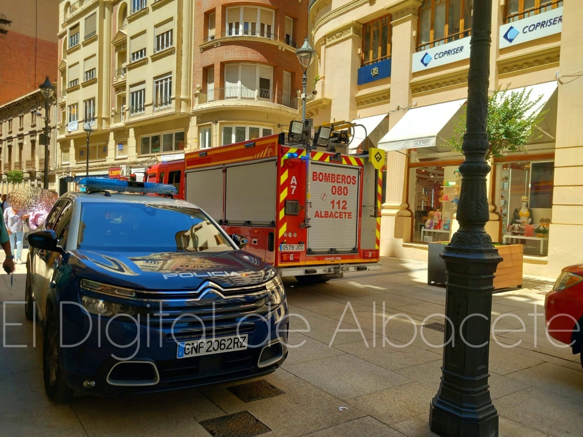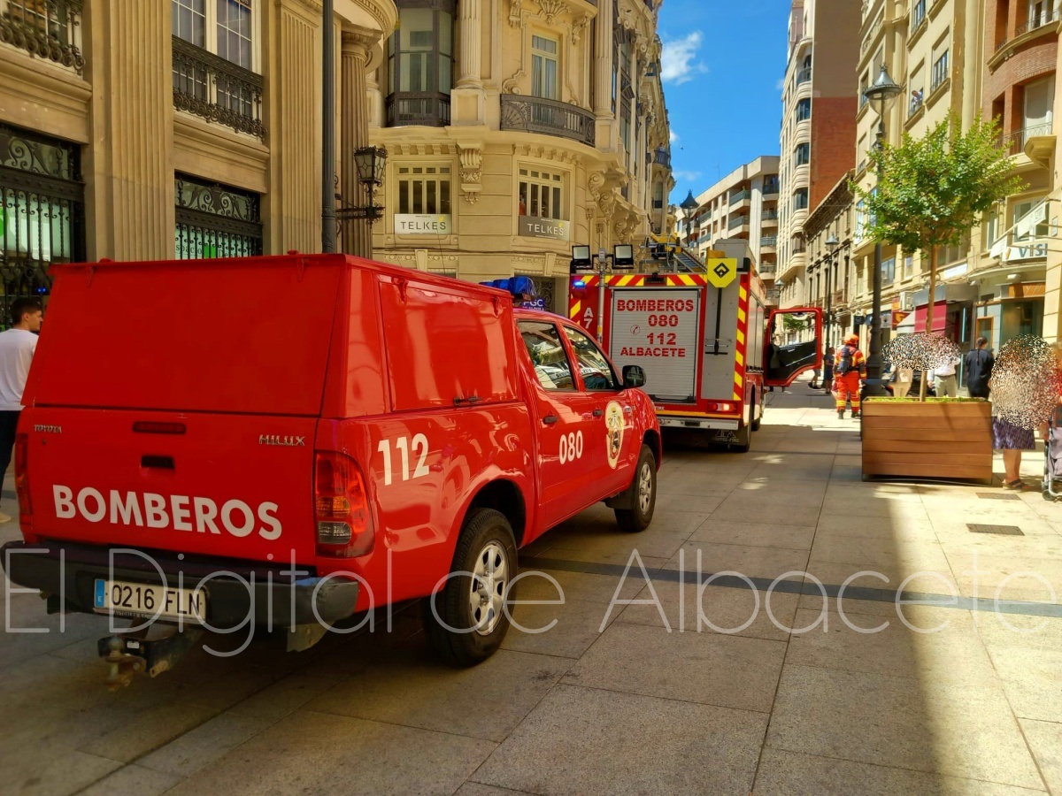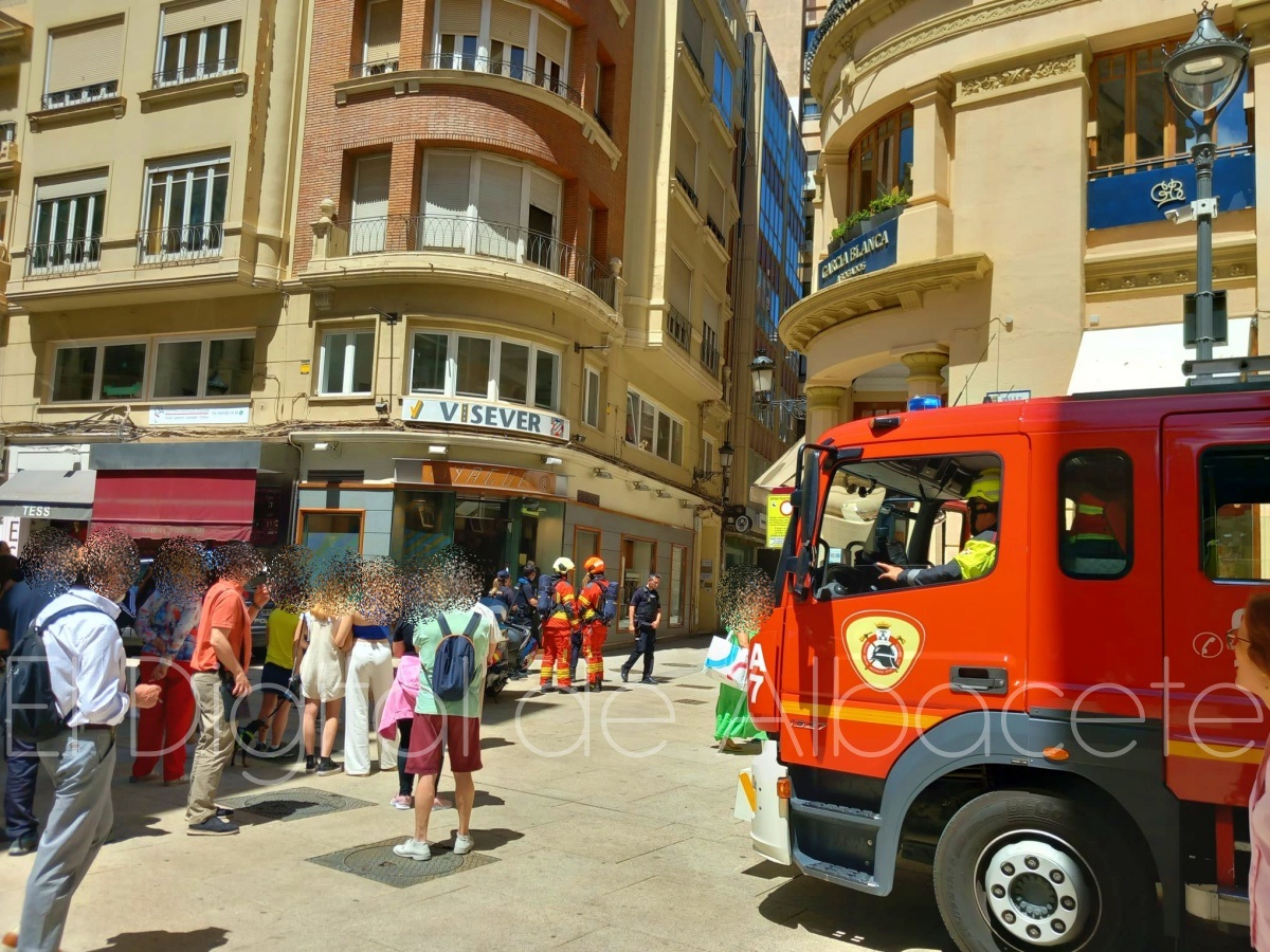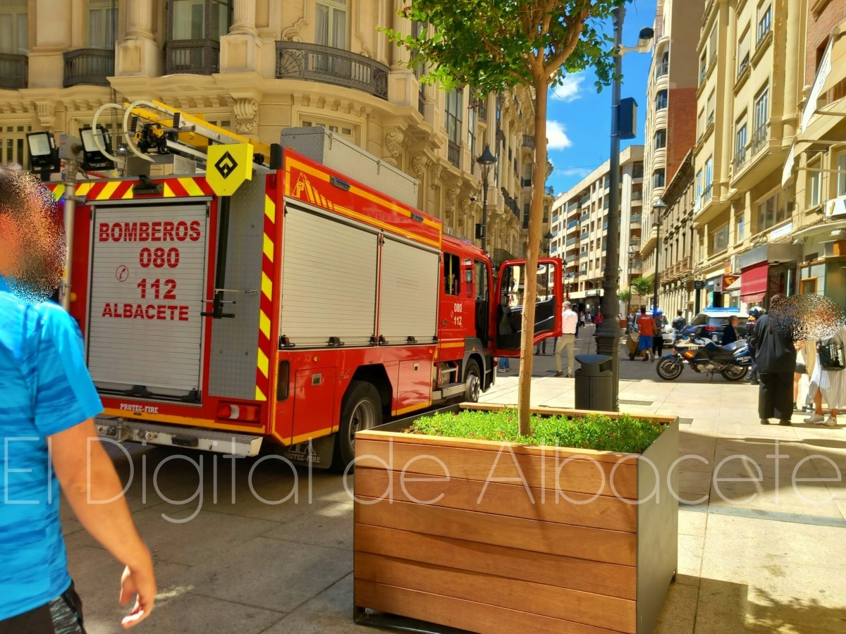 En torno a las 12:50 horas de este miércoles el corazón de Albacete era tomado por los Bomberos de la capital manchega y agentes de la Policía Nacional y de la Policía Local.