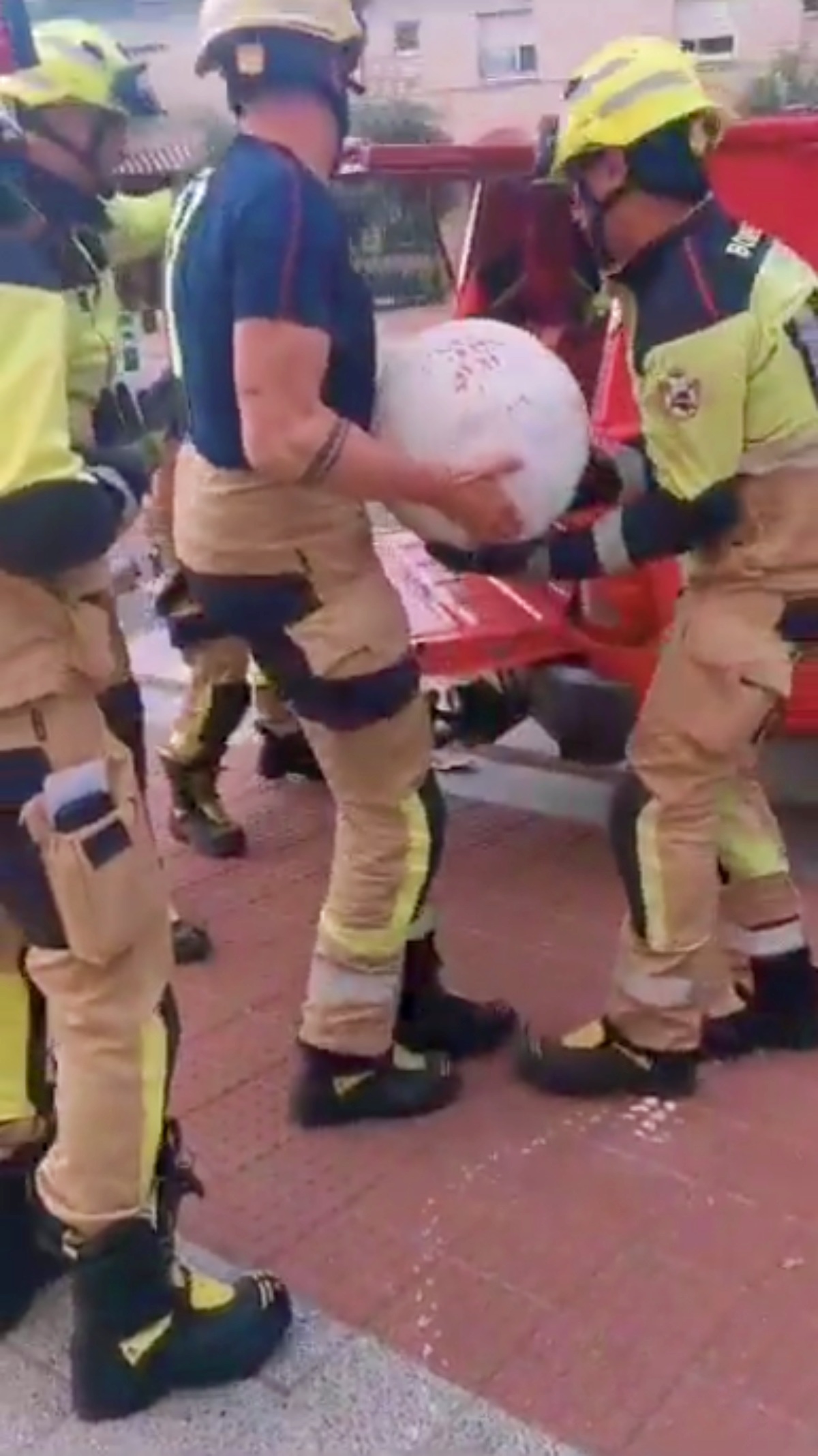 Los Bomberos de Albacete fueron los encargados de retirar la bola de la calzada, colocándola primero en la acera lejos de la circulación y cargándola posteriormente para su retiro en uno de sus vehículos.