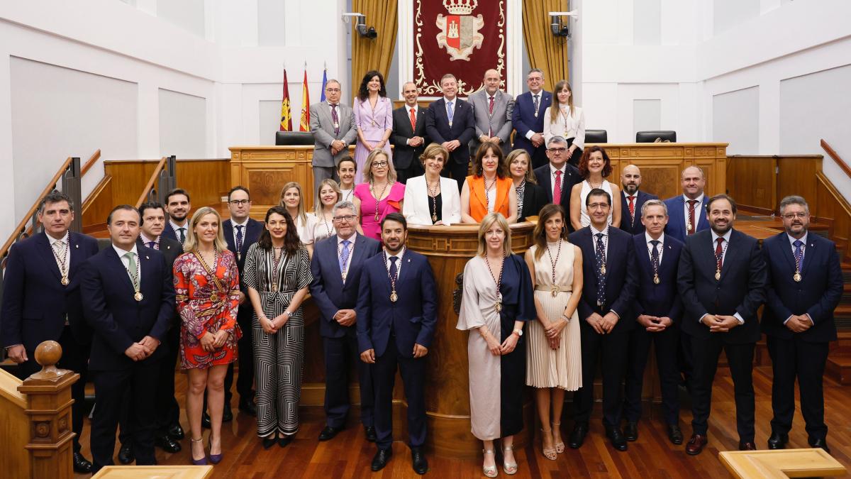 De este modo, el Pleno queda conformado con la siguiente estructura por formaciones: 17 diputados -uno más que la mitad- para el PSOE: Josefina Navarrete, Julián Martínez, Marisa Sánchez Cerro, José Manuel Cabellero, Blanca Fernández, Francisco Barato, Ana Isabel Abengózar, José Luis Martínez Guijarro, Paloma Jiménez, Ángel Tomás Godoy, Pablo Bellido, María Jesús Merino, Emiliano García-Page, Paloma Sánchez, Fernando Mora, Rosario García Saco y José Antonio Contreras; otros 12 corresponden al PP: Tania Andicoberry, Juan Antonio Moreno Moya, María Gil, Lola Merino, Santiago Lucas-Torres, María Roldán, José Antonio Martín-Buro, Ignacio Redondo, Itziar Asenjo, Francisco Núñez, Carolina Agudo y Santiago Serrano; y, por último, otros 4 para Vox, que entra por vez primera en la Cámara: Francisco José Cobo, Luis Blázquez, Iván Sánchez Serrano y David Moreno.