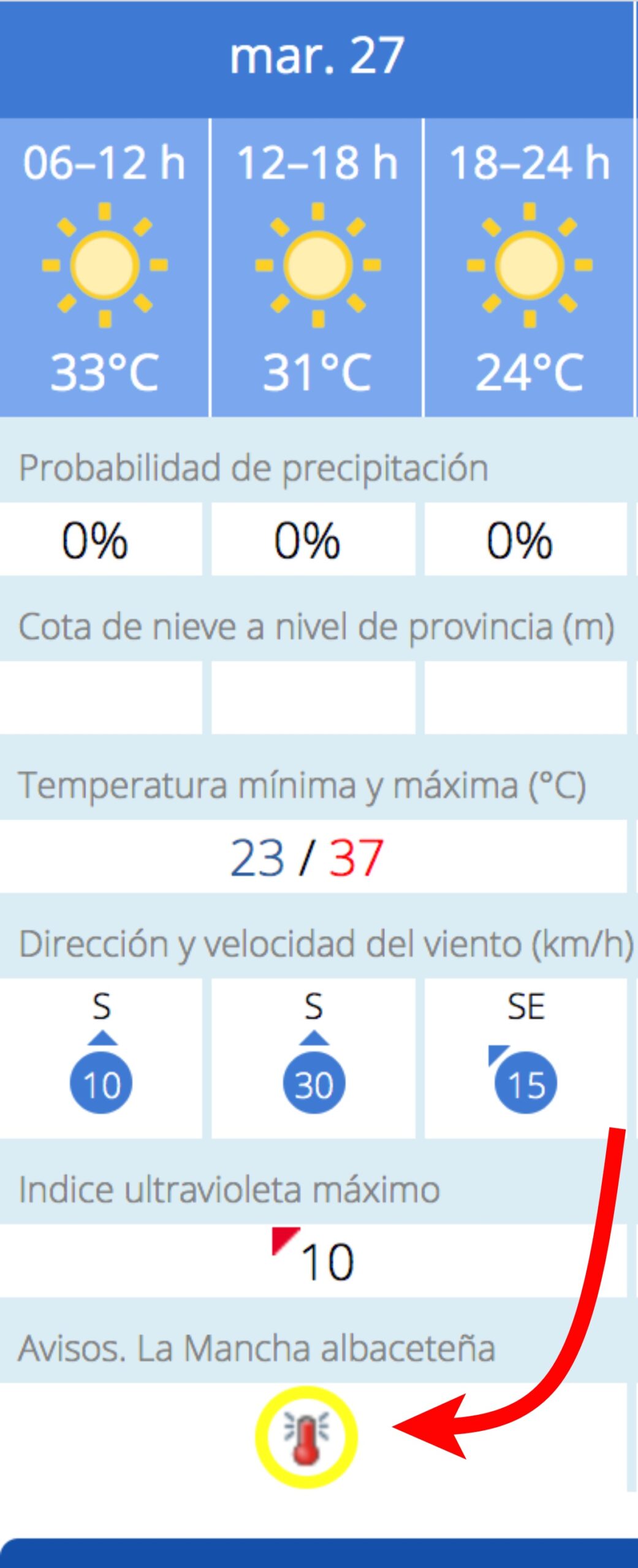 La previsión de la AEMET para Albacete capital es la siguiente: