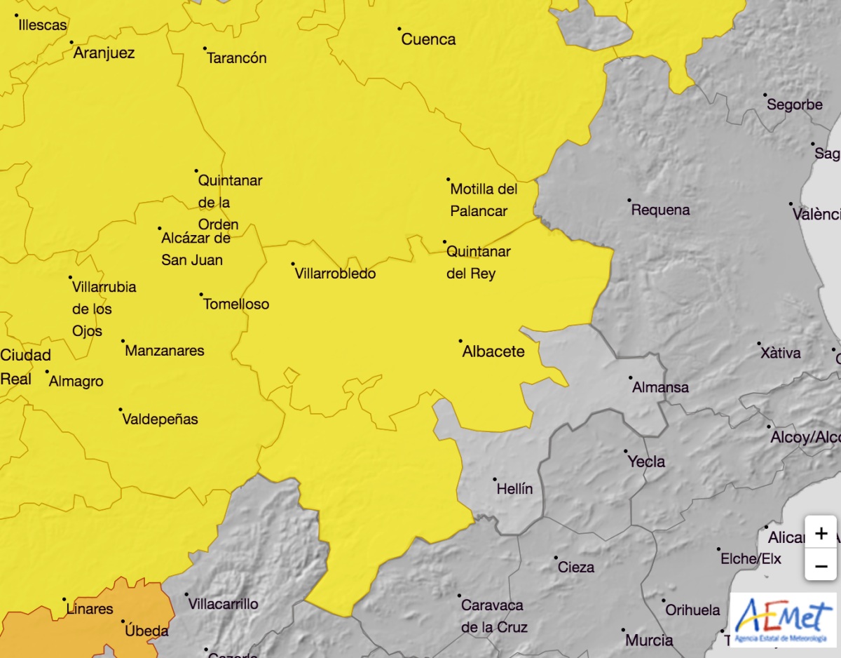 Las altas temperaturas, las precipitaciones y las tormentas tendrán este jueves en aviso amarillo o naranja a un total de 19 provincias españolas, entre ellas Albacete, según ha informado la Agencia Estatal de Meteorología (AEMET).