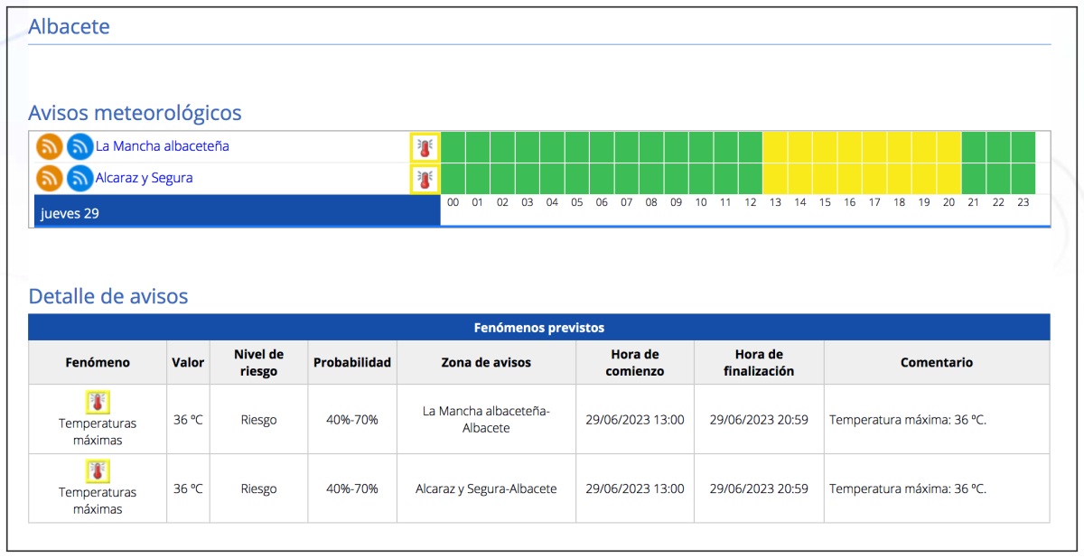 El calor también tendrá en aviso amarillo a cuatro provincias de Castilla-La Mancha: Albacete, Ciudad Real, Cuenca y Toledo.