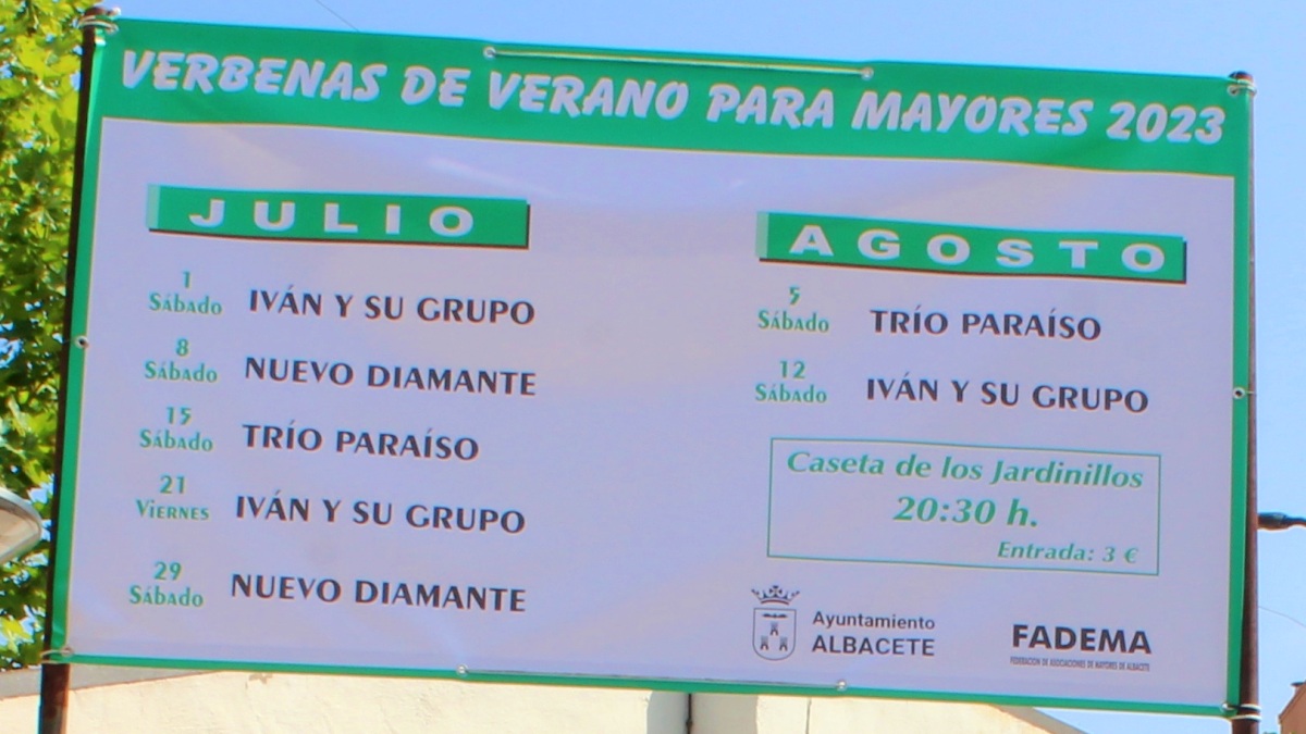 Desde el Ayuntamiento y FADEMA animan a todos los albaceteños, de manera especial a las personas mayores, a disfrutar de las verbenas que tendrán lugar en la Caseta de Los Jardinillos del 1 de julio al 12 de agosto como una gran oportunidad para disfrutar de la música al aire libre y estrechar lazos de unión entre los vecinos.