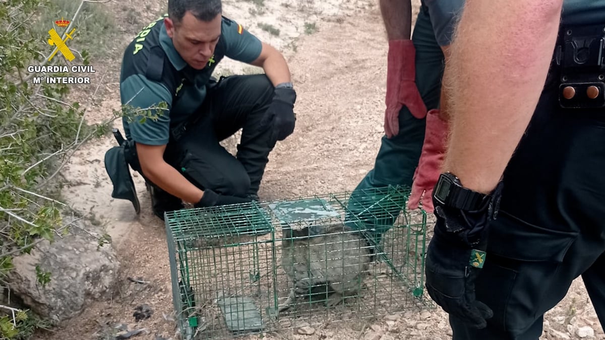 Efectivos de la Patrulla del Servicio de Protección a la Naturaleza (Paprona) de San Clemente y del Puesto de la Guardia Civil de La Almarcha han rescatado un ejemplar de gato montés que se encontraba apresado en el interior de una jaula, en el término municipal de Pinarejo (Cuenca).