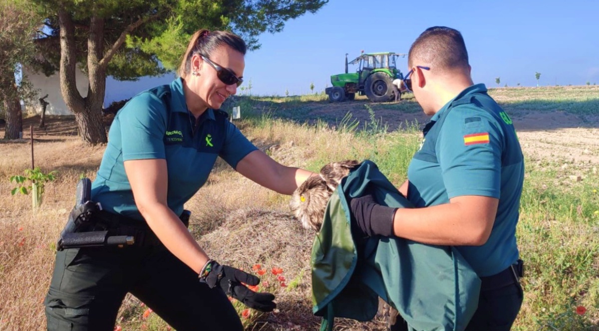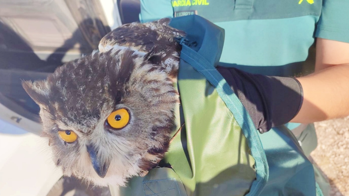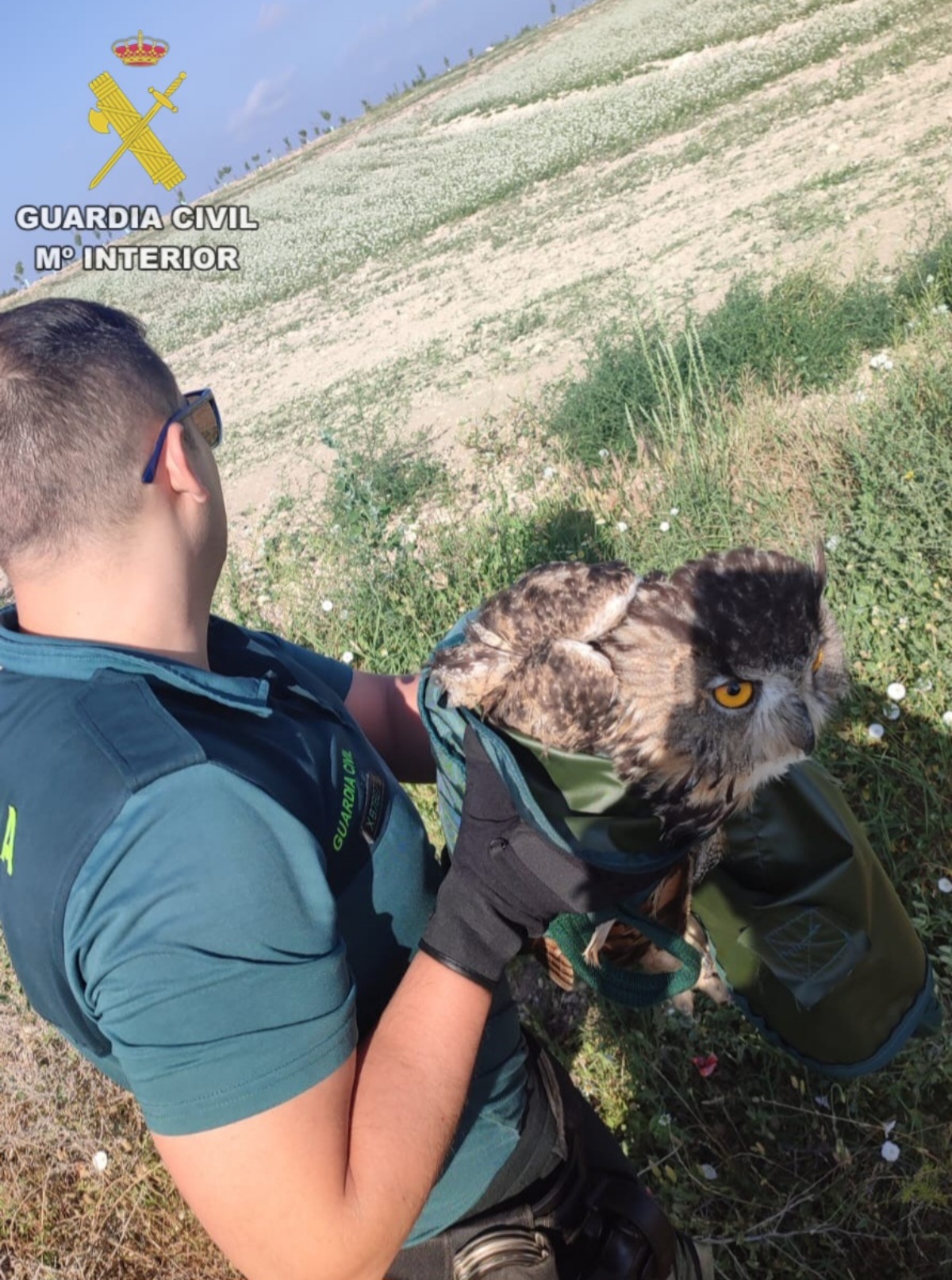 Efectivos de la Guardia Civil de Albacete ha rescatado un ejemplar de búho real que tenía dificultades para volar.