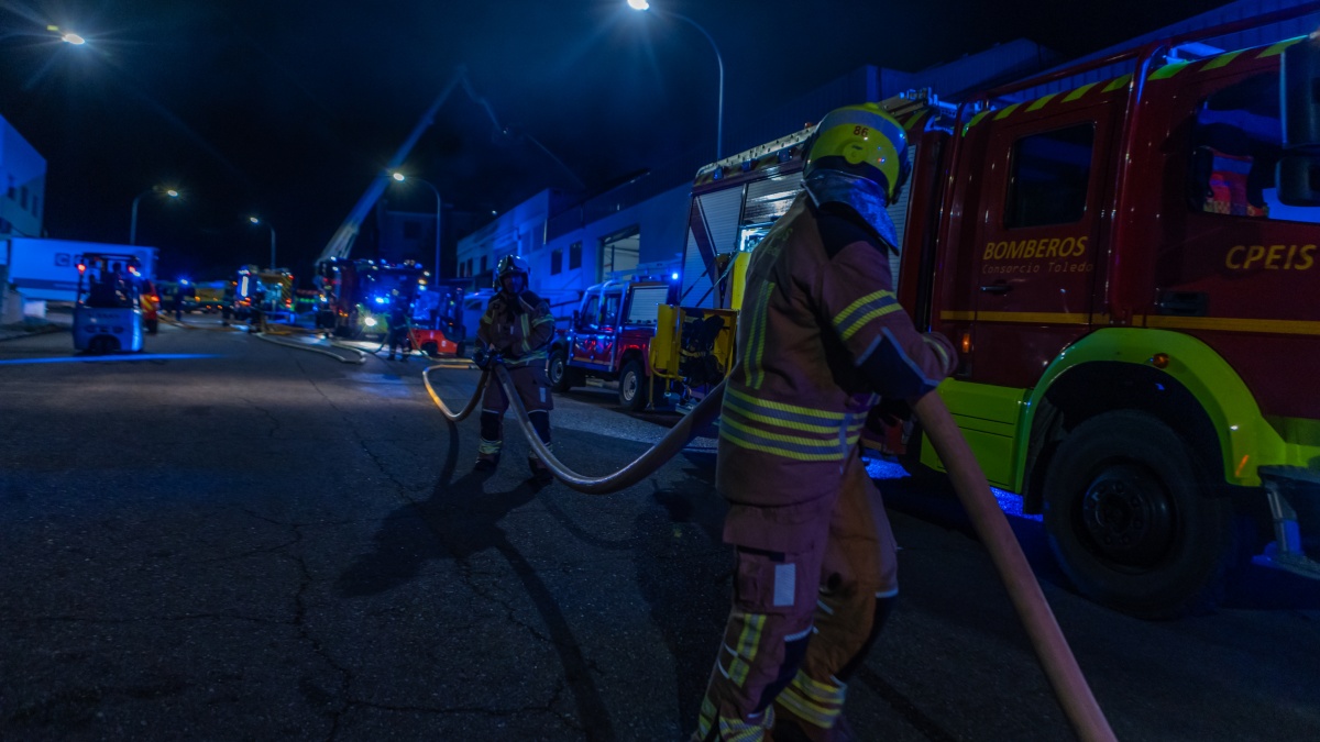 Tal y como han informado a Europa Press fuentes del 112 de Castilla-La Mancha, el aviso de las llamas se registró a las 21.47 horas en una nave de la calle Nápoles, contigua a la A-42.