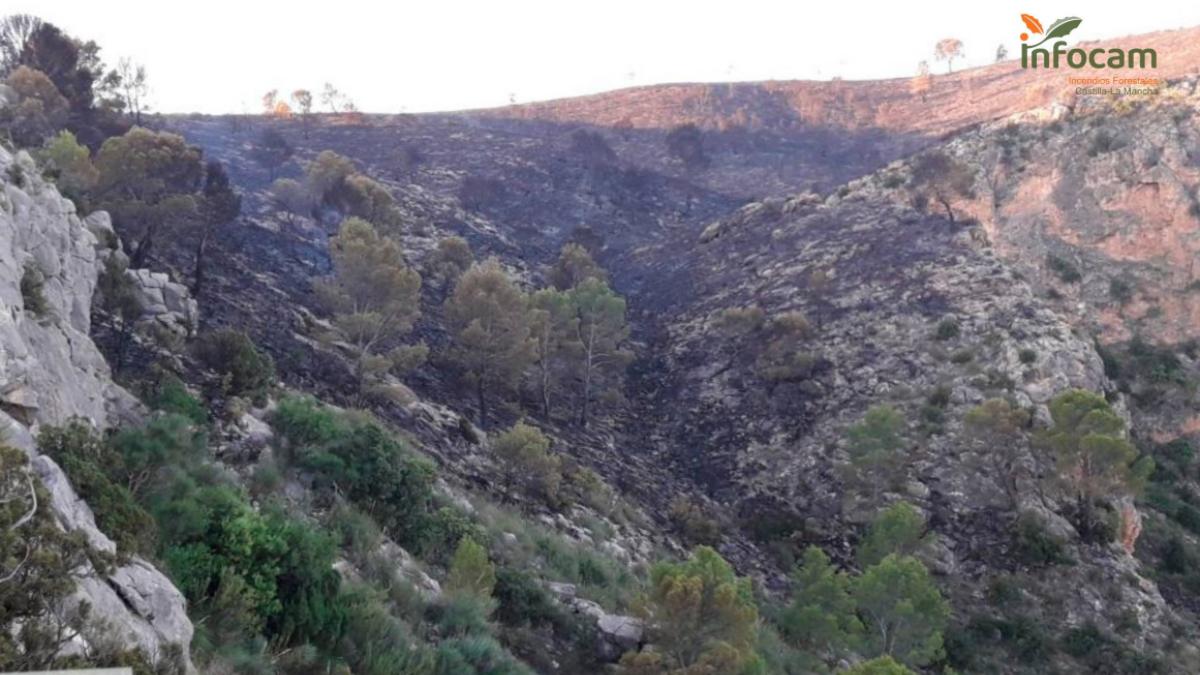 Otro de los incendios que se está desarrollando en la provincia de Albacete es en el municipio albaceteño de Letur, siendo detectado a las 14.52 horas por un vigilante fijo debido a una columna de humo y que era controlado este mismo jueves a las 20:38 horas.