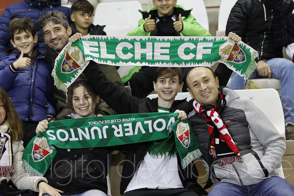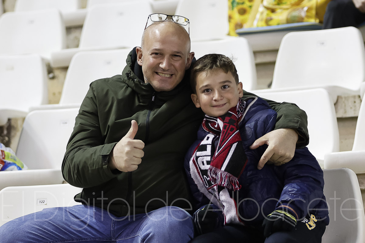 Más de 10.200 personas asistieron este sábado al Carlos Belmonte para presenciar en directo el duelo entre el Albacete Balompié y el Elche CF, un partido que acabó con empate a uno tras el gol de Óscar Plano para adelantar a los visitantes nada más comenzar la segunda mitad y el de Dani Escriche en el 75, que sirvió para romper el gafe del delantero de Burriana y poner las tablas en el marcador.