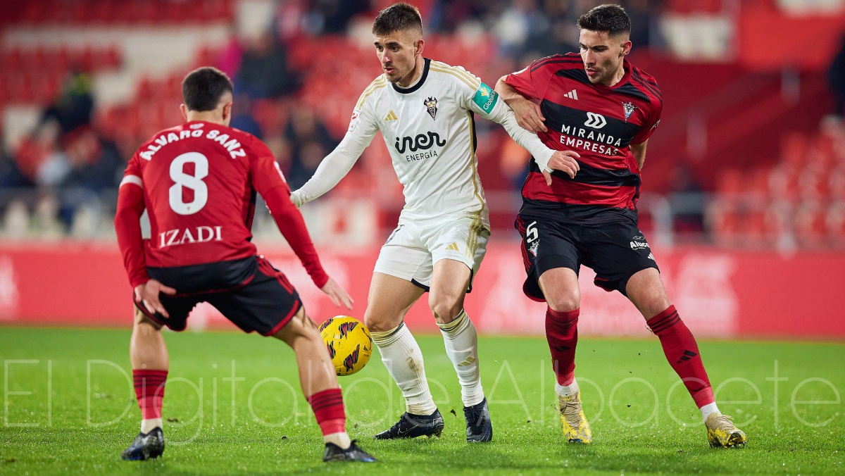 El que es uno de los capitanes del Albacete Balompié ha atendido a los medios de comunicación en las entrañas de Anduva tras la derrota del equipo blanco ante el CD Mirandés por 2-0.