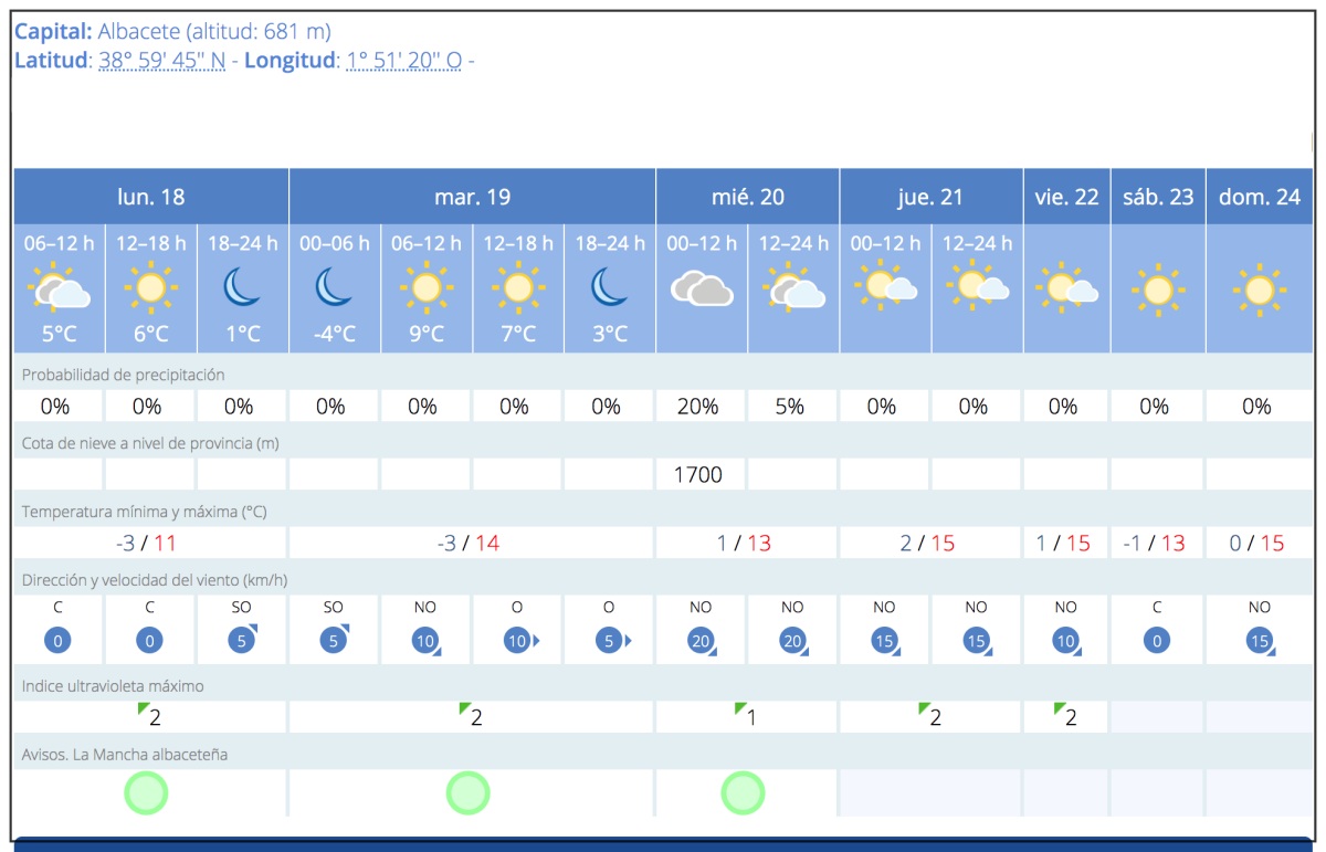 El tiempo de la semana en Albacete