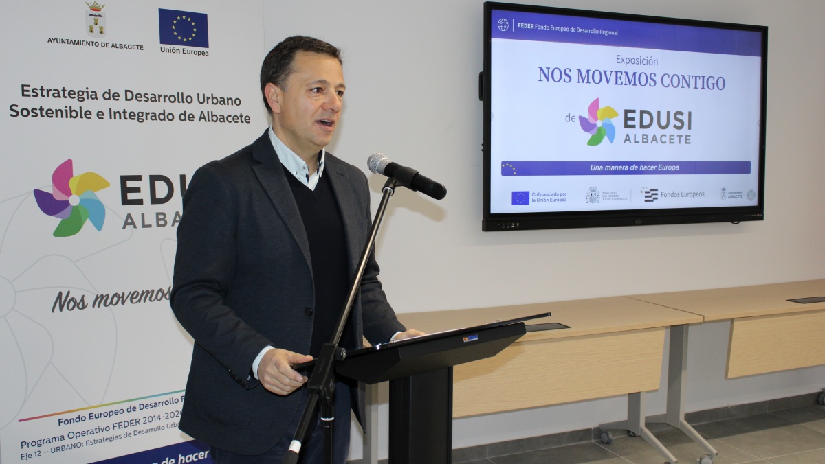 El alcalde de Albacete, Manuel Serrano, ha animado a los albaceteños a visitar la exposición ‘Nos movemos contigo’ hasta el próximo 18 de diciembre de 2024 en el rehabilitado edificio del Paseo de Simón Abril para poder conocer con gran detalle la transformación tan importante que ha sufrido nuestra ciudad a través de los 26 proyectos cofinanciados con fondos europeos procedentes de la Estrategia de Desarrollo Urbano Sostenible e Integrado (EDUSI, los cuales se corresponden con 58 contratos tramitados.