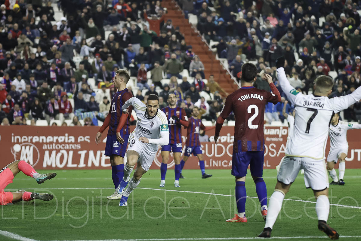 Cuando más cerrado parecía el partido, mejor estaba el rival y más lejos se vislumbraba un posible gol del Albacete, un error del Eldense personificado en Toni Abad sirvió para que el recién ingresado Higinio abriera la lata. Fue tras un centro al área desde la derecha de Carlos Isaac, que el citado Abad despejó hacia el centro del área y cedió a un Higinio Marín que, solo y convertido en cazagoles, no desaprovechó el regalo y mandó el balón a dormir y a hacer temblar las redes de la portería defendida por Aceves.
