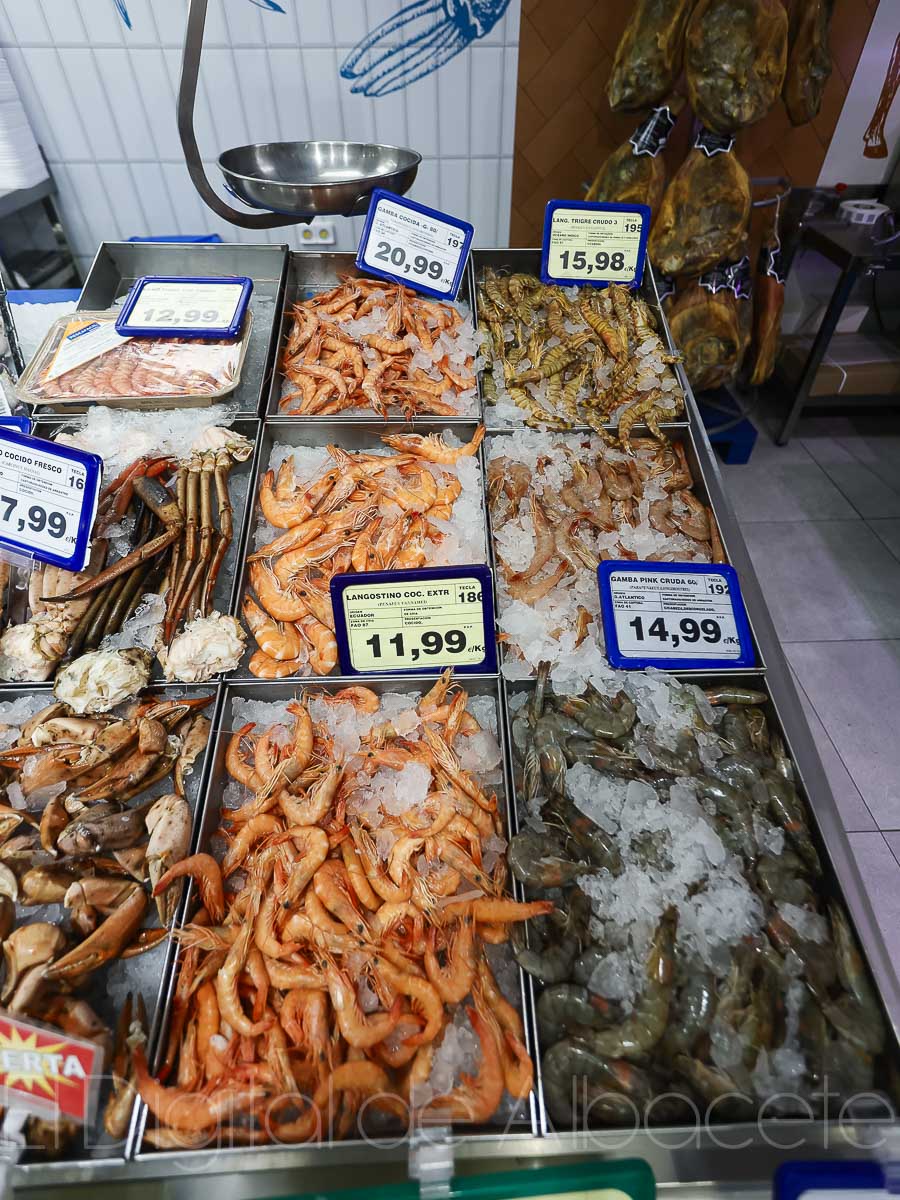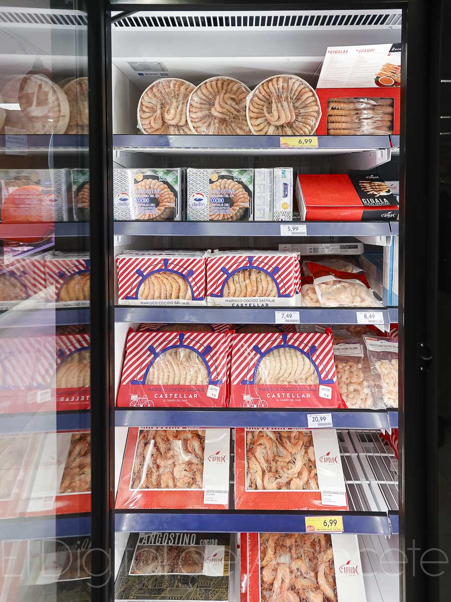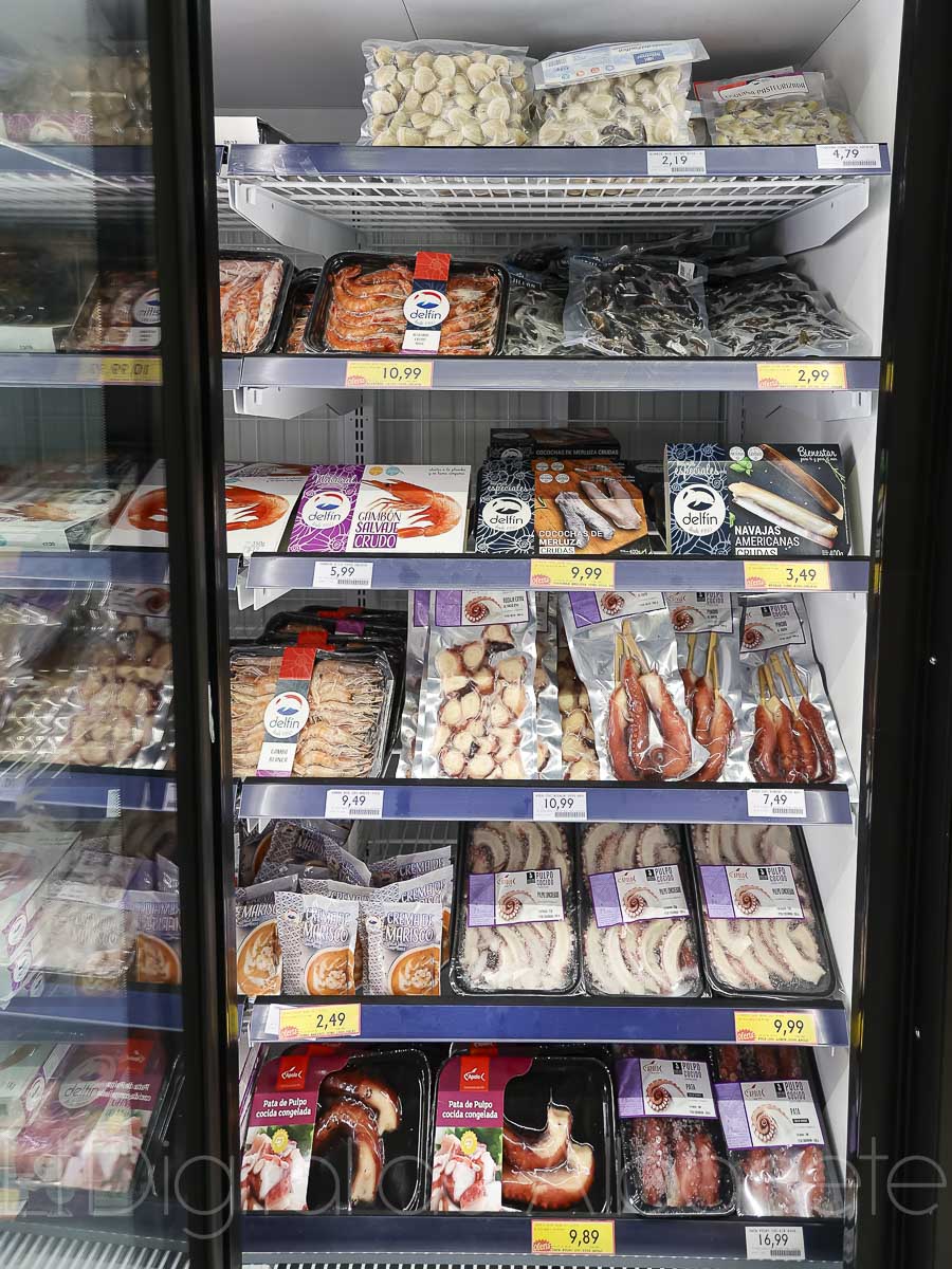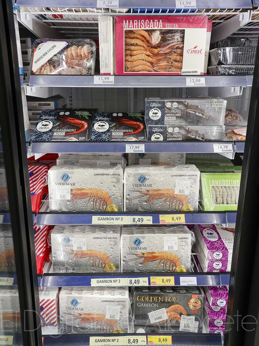 Roberto Godos, supervisor de supermercados Superalba, explica que existe una gran variedad también en los mariscos congelados, “se pueden encontrar langostinos, gambas, bocas de mar, bogavantes, en congelado también hay bastante surtido, pero destacamos, especialmente, los productos frescos de pescadería”.