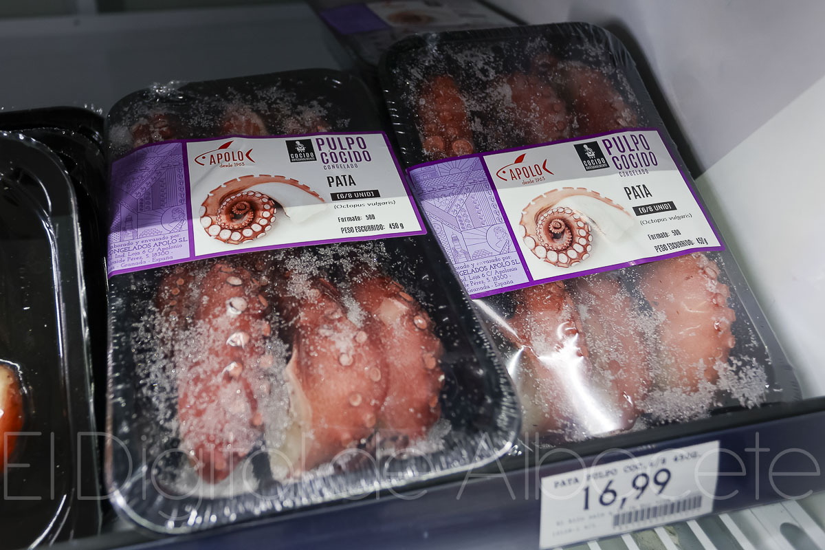 El Digital de Albacete ha contactado con Roberto Godos, supervisor de supermercados Superalba, y ha enumerado todos los productos que los albaceteños pueden adquirir de cara a las próximas celebraciones navideñas. El pescado y la carne son los productos estrellas de las cenas y comidas de Navidad. “La sección de pescadería ofrece amplias gamas de marisco y pescado fresco para deleitar a los mejores paladares, destacando el langostino tigre que ahora mismo se vende crudo a 15,99 euros el kilo”, explica Roberto.