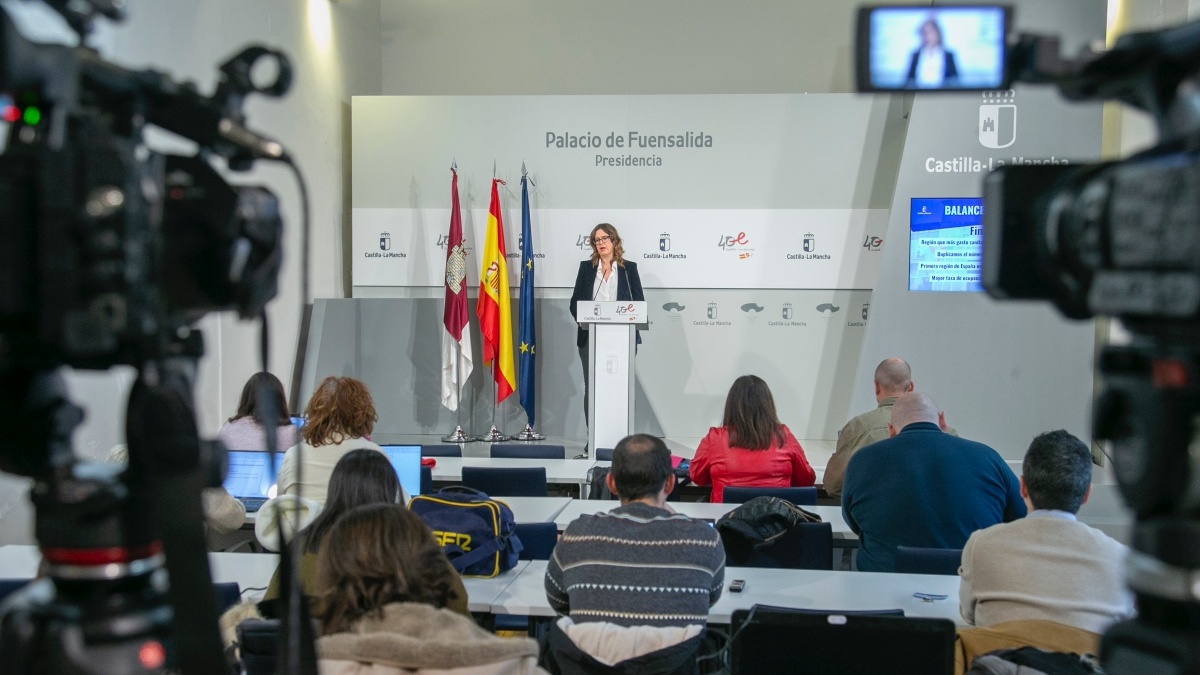 El Gobierno de Castilla-La Mancha ha realizado hoy, ante los medios de comunicación, un balance del año 2023 a través de la intervención de la consejera Portavoz, Esther Padilla, quien ha resumido las principales políticas desarrolladas en los últimos doce meses por el Ejecutivo que preside Emiliano García-Page.