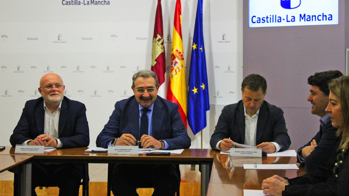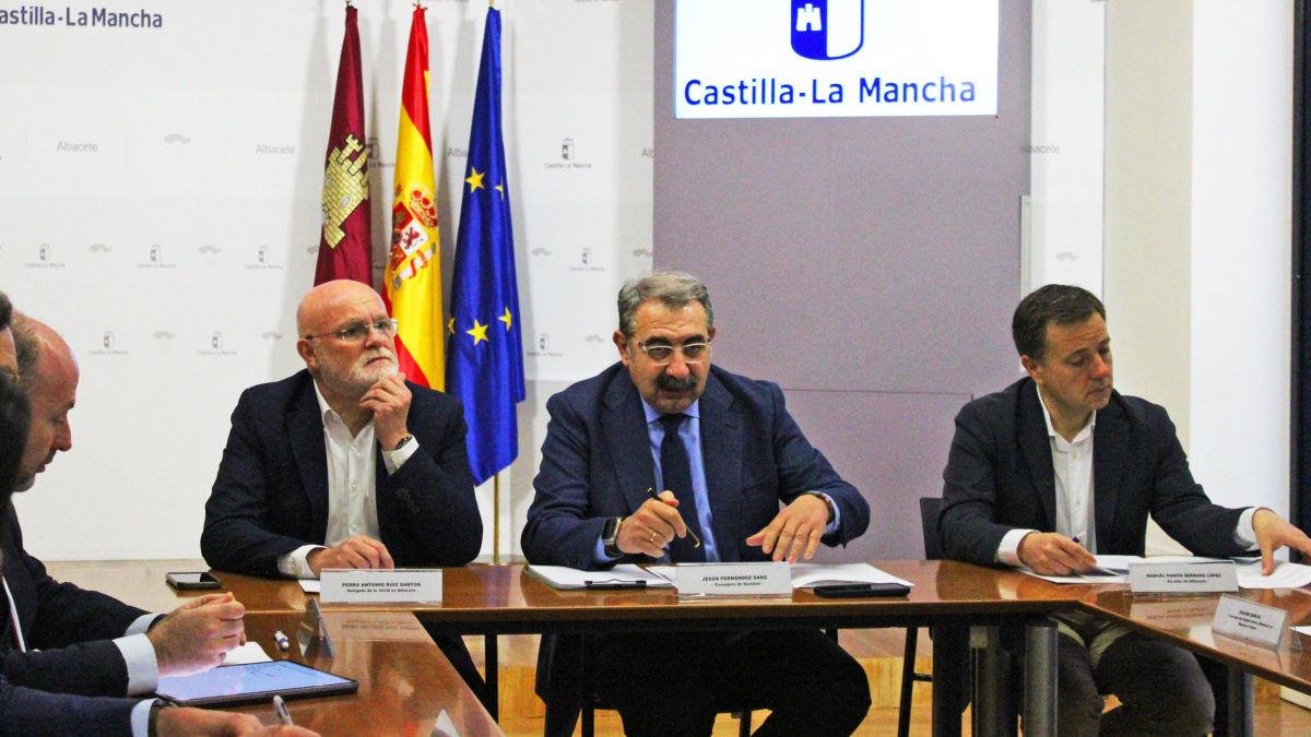 La Delegación de la Junta en Albacete ha acogido esta mañana una nueva reunión de la Comisión de Seguimiento de las obras de ampliación y reforma del Hospital de Albacete, donde el consejero de Sanidad, Jesús Fernández Sanz, ha informado de la evolución de este proyecto, el más importante que desarrolla el Gobierno de Castilla-La Mancha en la ciudad, con una inversión total estimada de 146 millones de euros.