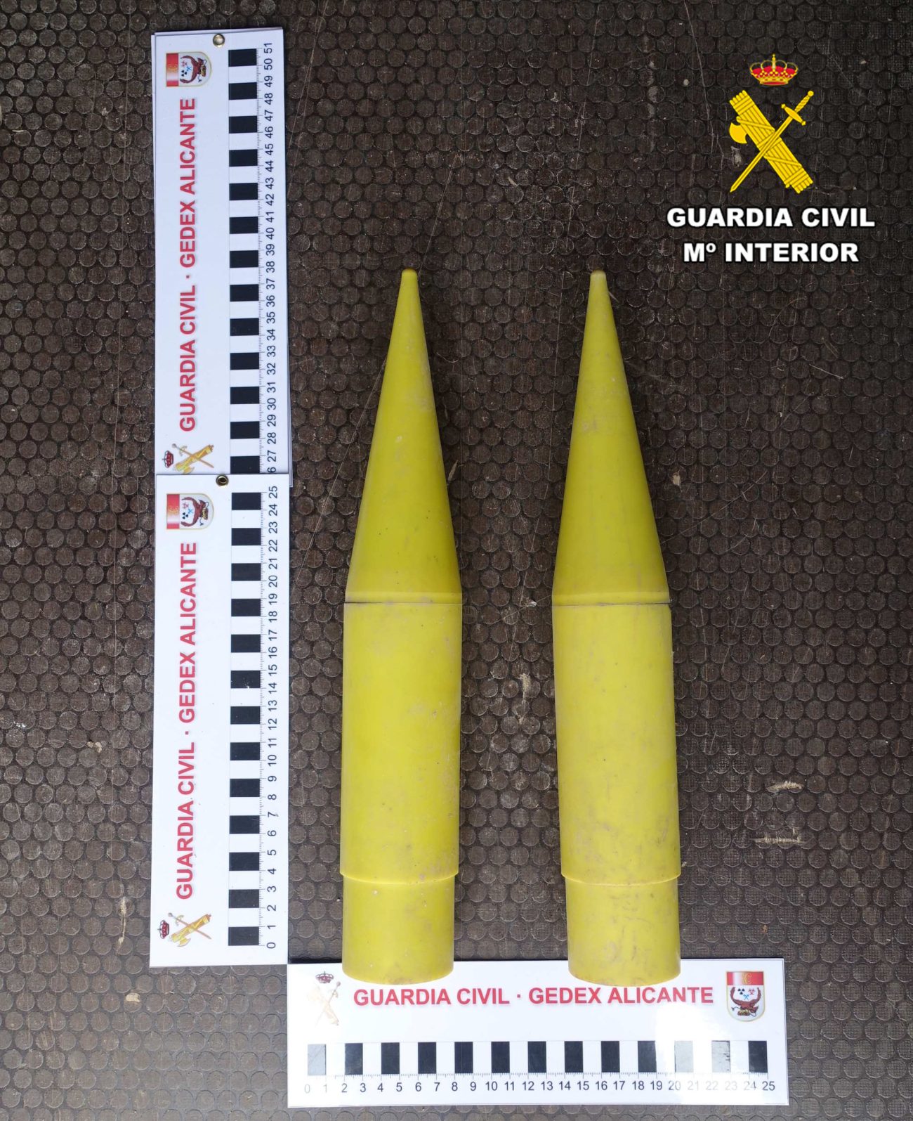 Desde el Centro Operativo Complejo (COC) de la Benemérita albacetense se pasó aviso del hallazgo al Grupo de Desactivación de Explosivos de la Guardia Civil (GEDEX) de la Comandancia de la Guardia Civil de Alicante, dos de cuyos efectivos se desplazaron al lugar donde había aparecido este material.
