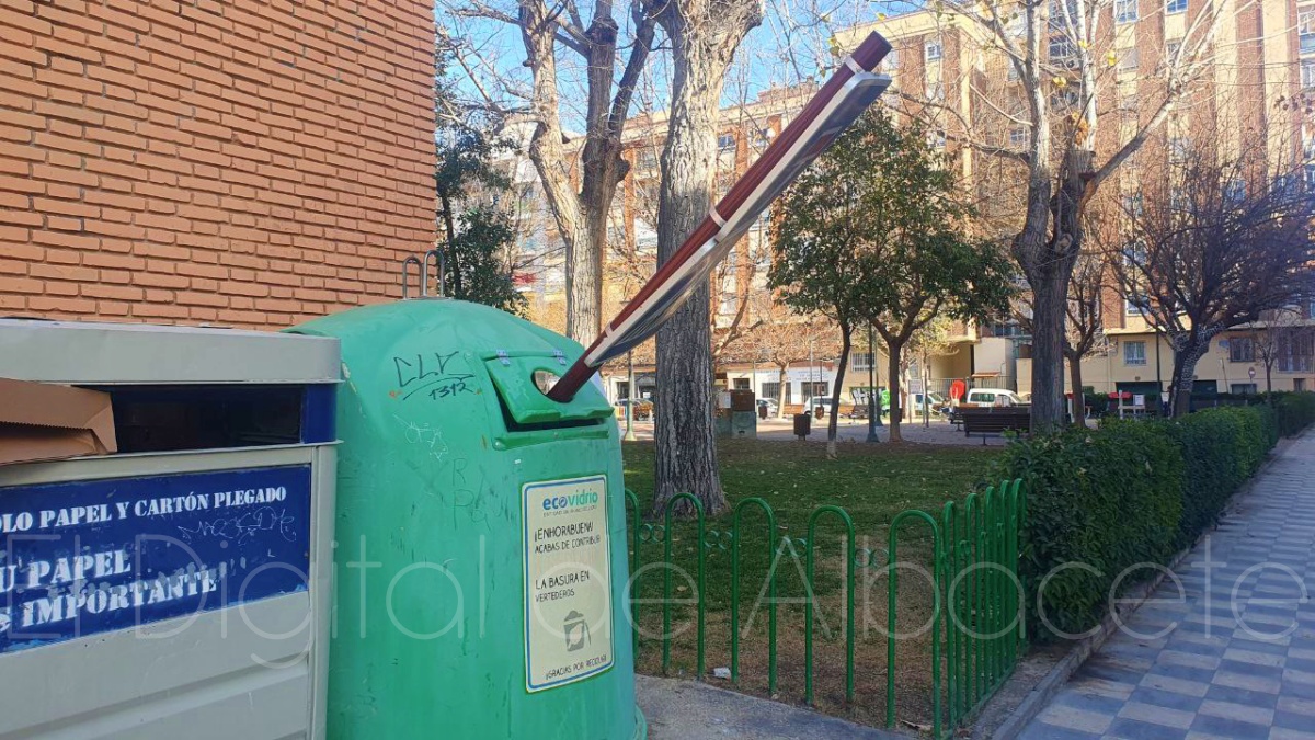 La imagen fue tomada en el día de ayer, lunes 1 de enero, en torno a las 12.00 horas, y se ubicaba en la confluencia en Albacete de las calles San Luis y Hermanos Jiménez, junto al Parque del Poeta Ismael Belmonte, conocido popularmente por el del Santo Ángel.