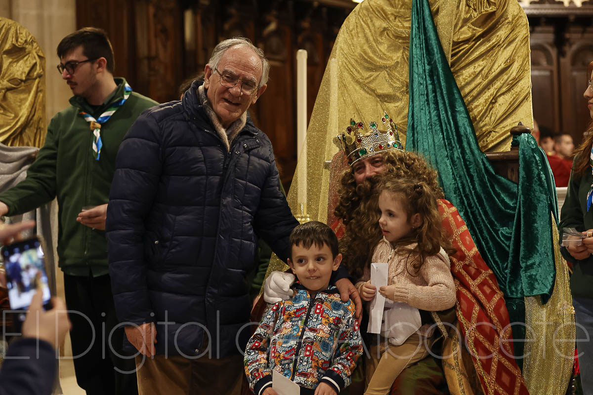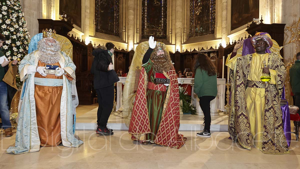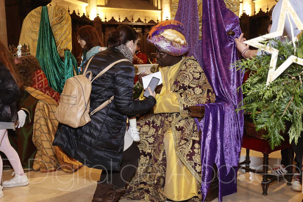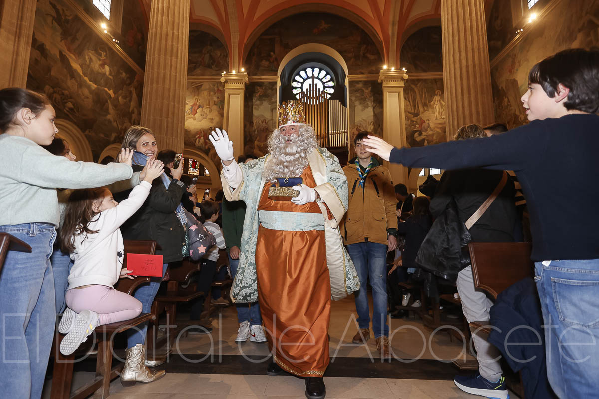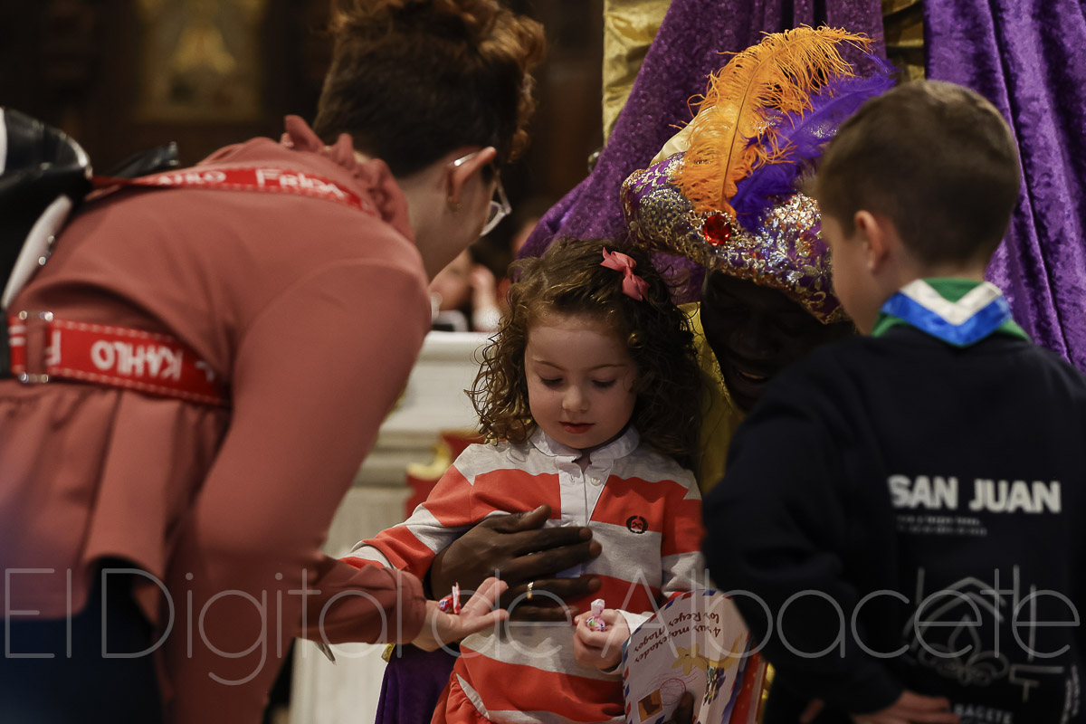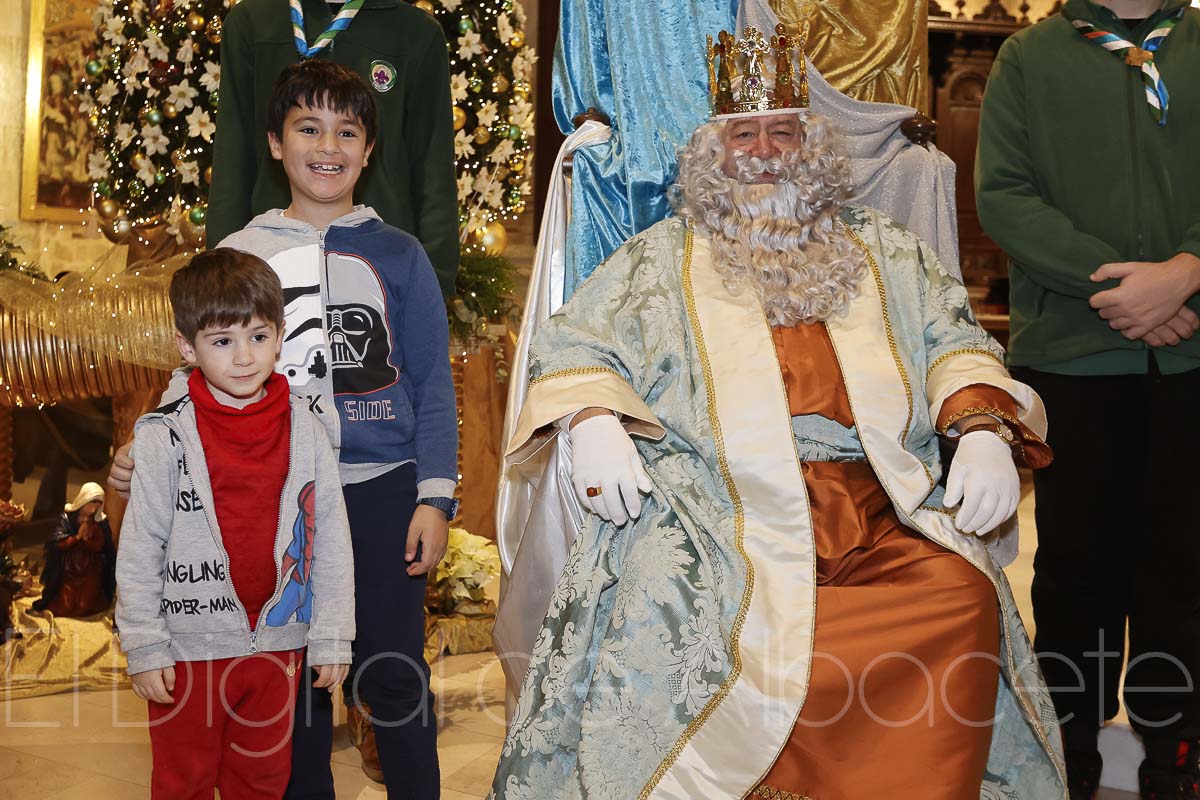 Los Reyes Magos de Oriente han visitado la Catedral de Albacete este miércoles, 3 de enero, una visita que han aprovechado para adorar al Niño Jesús junto a todos aquellos niños y niñas de Albacete que se han acercado al templo para acompañarlos y darles en persona las cartas en las que piden sus regalos y deseos.