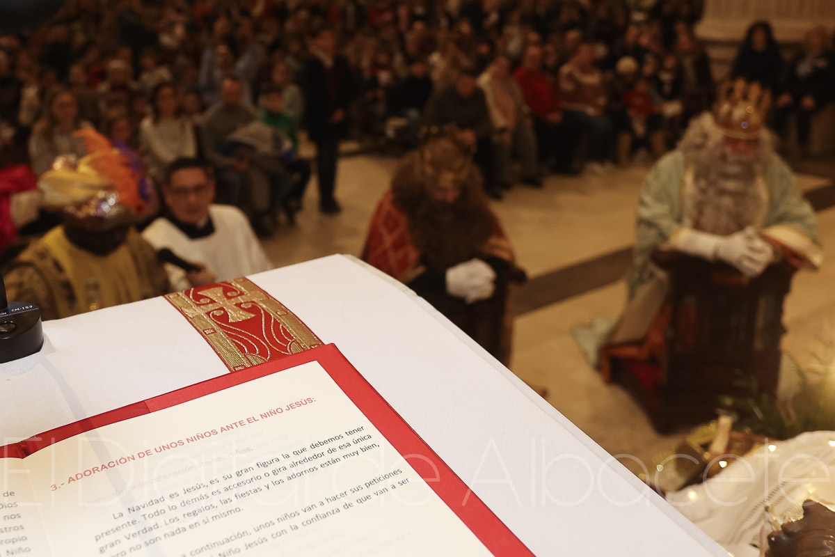 Este miércoles, 3 de enero, sus Majestades Melchor, Gaspar y Baltasar se hicieron presentes a las 5 de la tarde en la Parroquia de San Juan Bautista (Santa Iglesia Catedral) para adorar al Niño Jesús, estando acompañados de la presencia de todos aquellos albaceteños que quisieron acercarse a compartir dicho momento con ellos y a confesarles sus deseos de cara a la noche más mágica del año; la del próximo día 5 de enero, en la que muchos niños esperan que sus deseos se hagan realidad.