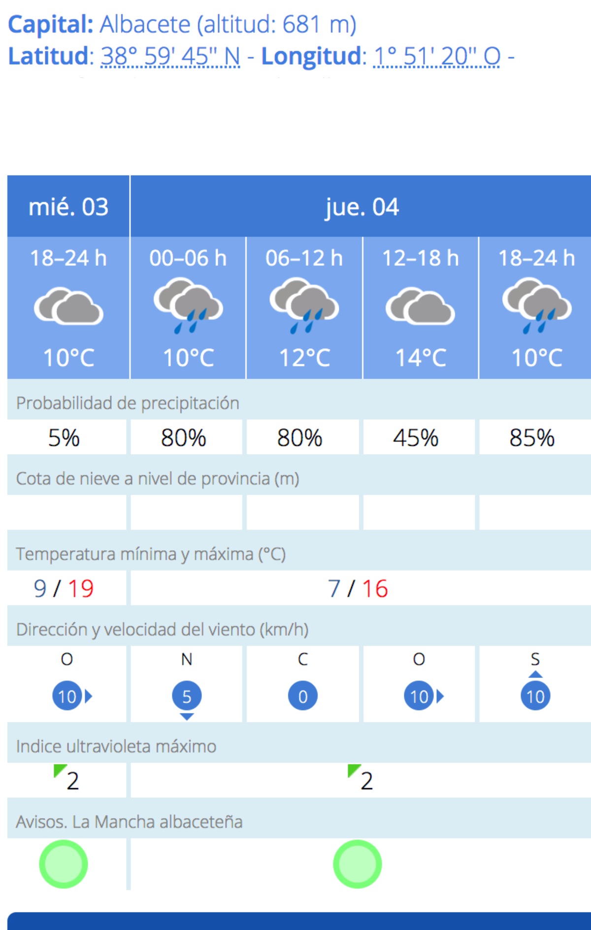 La previsión de la AEMET para Albacete capital es la siguiente: