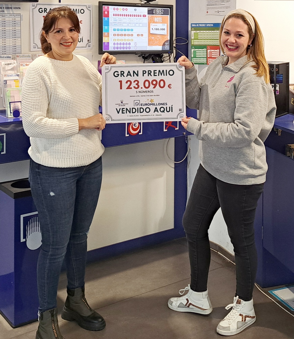 En el Sorteo nº 1 de Euromillones de ayer martes, 2 de enero de 2024, han aparecido en España un total de cuatro boletos premiados con la Tercera Categoría (5+0); siendo uno de ellos validado en Albacete capital.