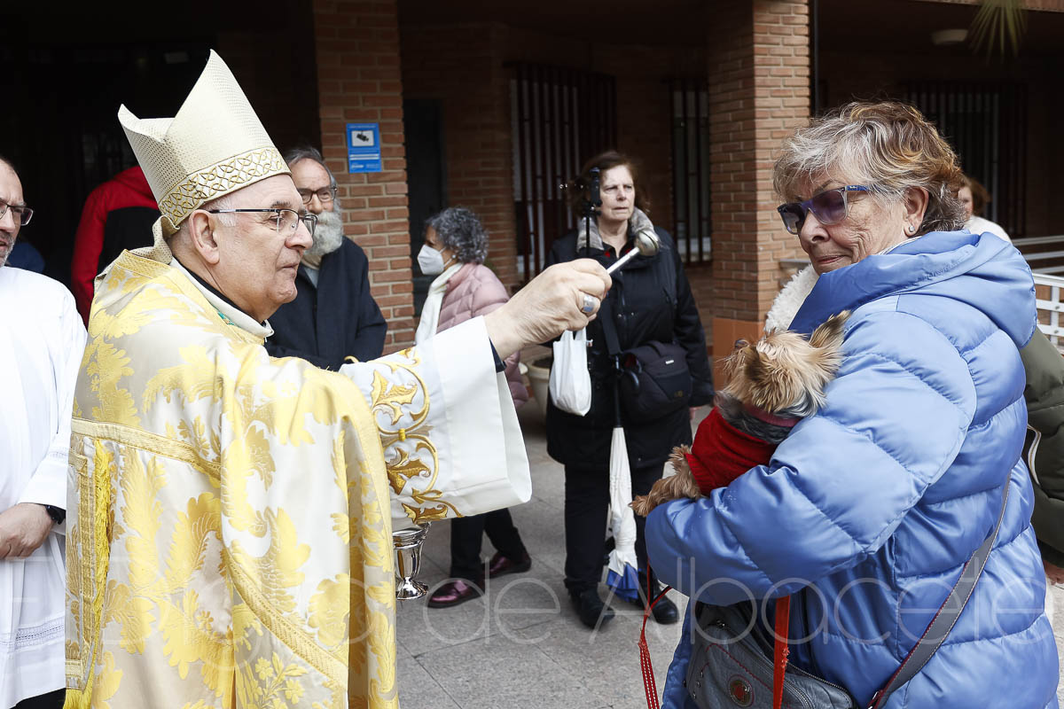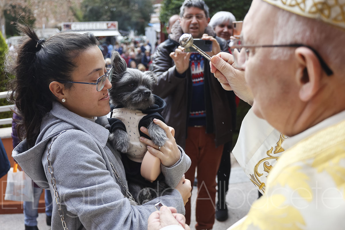 Gatos, perros, aves y numerosas mascotas recibían este miércoles 17 de enero la tradicional bendición de San Antón. A las puertas del Asilo el obispo de Albacete, Ángel Fernández, impartía esta bendición a las mascotas de los albaceteños.