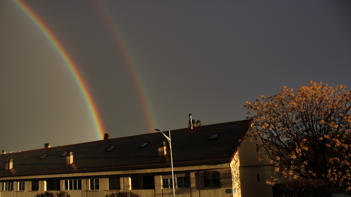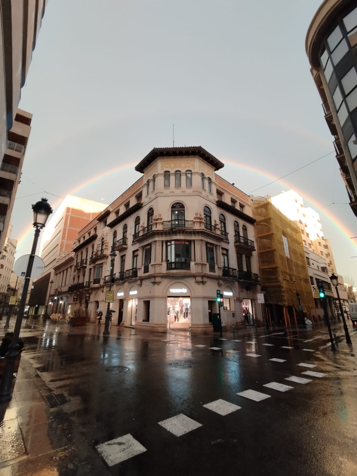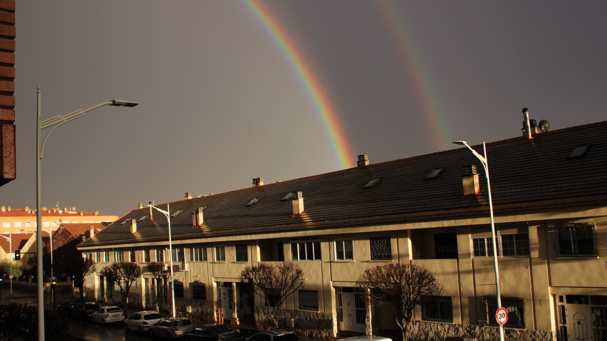 No es muy habitual ver en el cielo un doble arco iris y los albaceteños han querido guardar este recuerdo en su retina. Este fenómeno siempre atrae las miradas atentas de los curiosos y más de uno se ha asomado esta tarde al balcón de su casa para observar embelesado el doble arco iris que cubría la ciudad y que daba un poco de color a una tarde muy oscura para ser viernes.