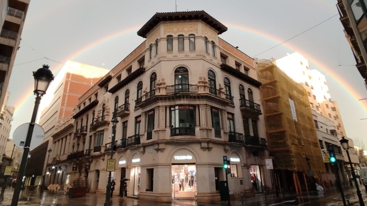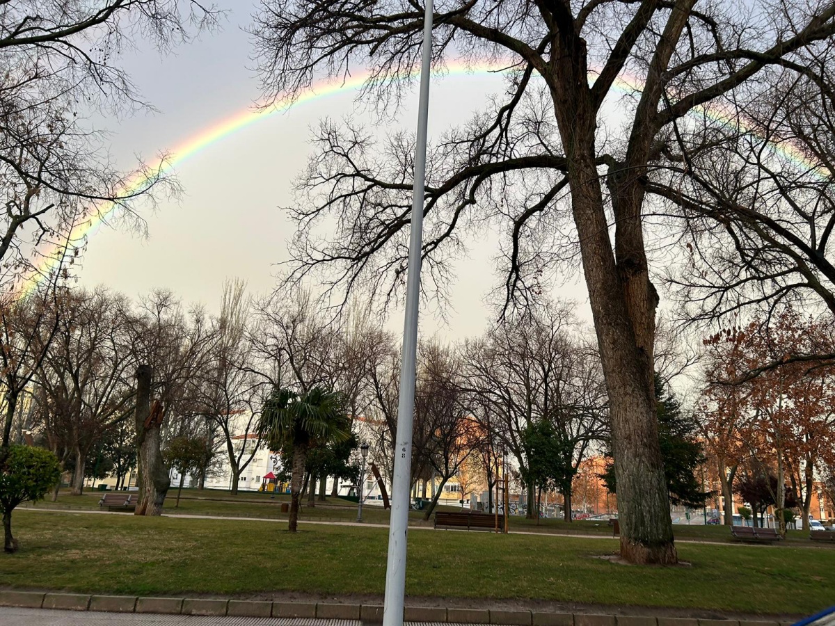 Sobre el cielo de Albacete se ha posado un doble arco iris que ha embellecido un cielo casi de color negro que auguraba tormenta para gran parte de la tarde. Los albaceteños han podido observar un cielo tan nublado, que desde primeras horas de la tarde hacía presagiar que el viernes iba a estar pasada por agua.